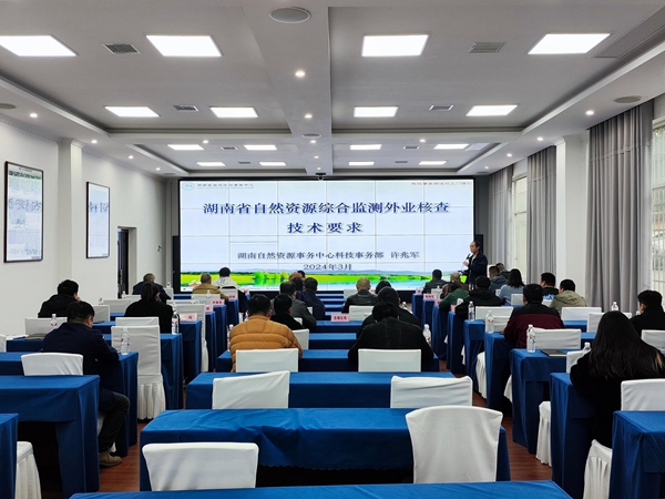 为更好把握2024年卫星监测外业核查新形势、新要求,高质量完成卫星监测外业核查项目,3月15日,省自然资源事务中心科技事务部副部长许兆军到省空间所湘潭中心开展“湖南自然资源综合监测外业核查技术要求”专题培训。湘潭市自然资源和规划局行政执法支队、各县区自然资源执法大队相关负责人,省空间所测绘二院全体职工参加。