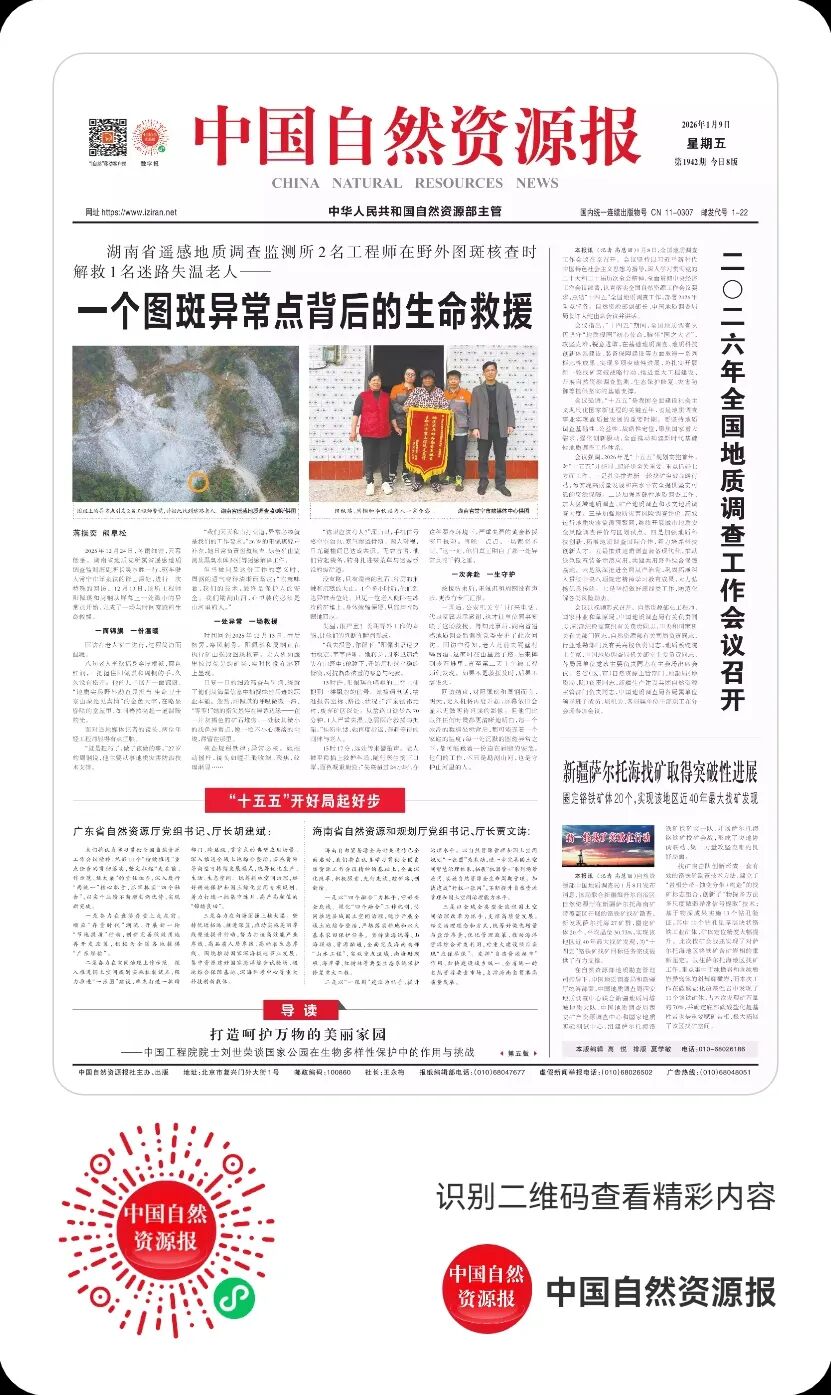 近日,由新葡京娱樂遥感所两名阳佩琪、周钢工程师在野外图斑核查途中完成的一场惊心动魄的生命救援,获得了国家级行业媒体——《中国自然资源报》的高度关注,并以其头版头条的显著位置刊发报道《一个图斑异常点背后的生命救援》,向全国自然资源系统与社会公众生动讲述了湖南地质人恪尽职守、心系人民的暖心故事。