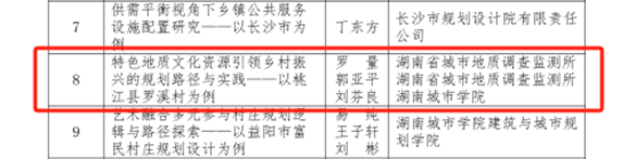 近日,湖南省国土空间规划学会2024年度优秀国土空间规划论文评选揭晓,由湖南省城市地质调查监测所郭亚平、罗量、刘芬良撰写的论文《特色地质文化资源引领乡村振兴的规划路径与实践——以桃江县罗溪村为例》,喜获优秀国土空间规划论文一等奖。