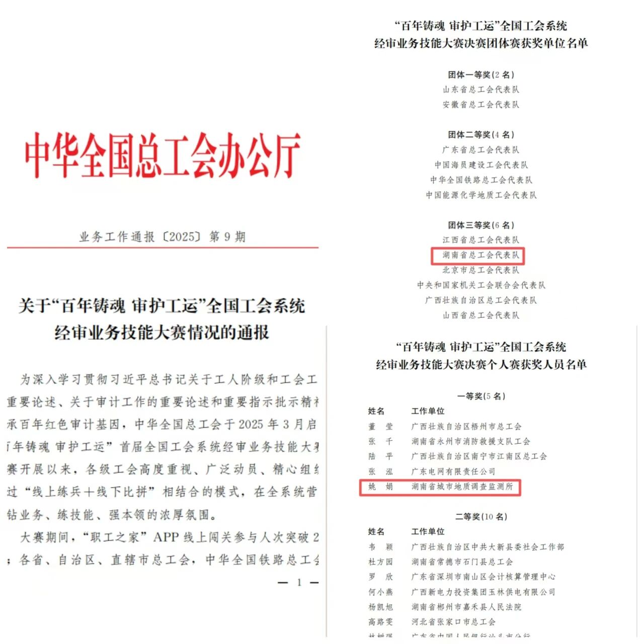 喜报!姚娟同志获全国经审业务技能大赛双奖殊荣 湖南省总工会贺信点赞勉励