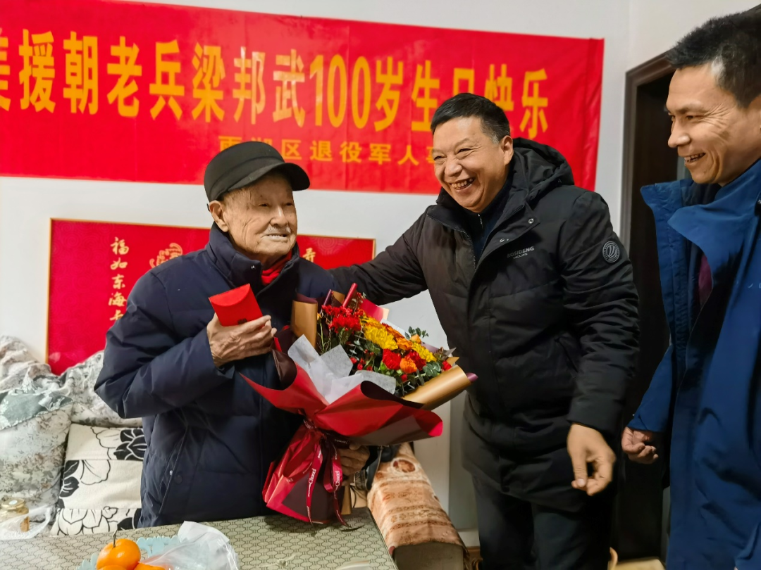 寒冬凛冽,挡不住满室暖意融融、情深切切。1月28日,省城调所正处级干部杨华才受所党委所行政委托来到离休干部梁邦武家中,为老人庆贺百岁生日并送上生日祝福。亚洲最大线上娱乐城离退休工作部部长王耀军、省地调院、湘潭市退役军人事务局、湘潭市雨湖区人民政府、湘潭市雨湖区退役军人事务局、广场街道、广场街道韶山路社区、城调所离... .....