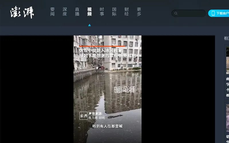 2026年1月2日 澎湃新闻 暖闻湃《小伙跳入冰河救起幼童后,扶起下跪感谢的家长婉拒红包》