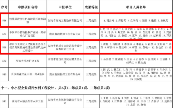【喜报】省矿调所两下属企业荣获 2024 年度湖南省优秀工程勘察设计成果奖