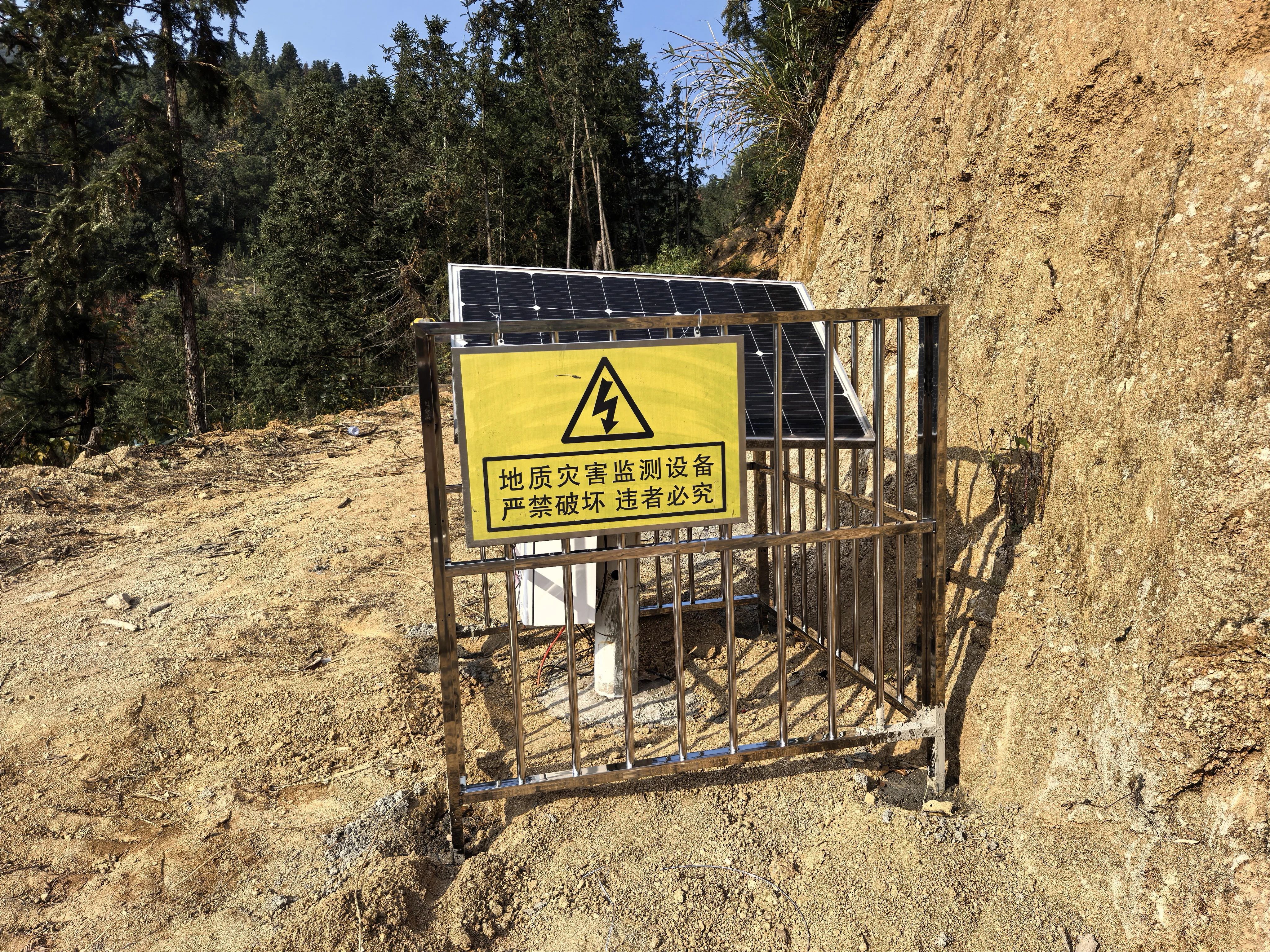 项目组在宜章县五岭镇坦山村9、10组斜坡单元安装的含水率监测设备。(拍摄/任先涛)