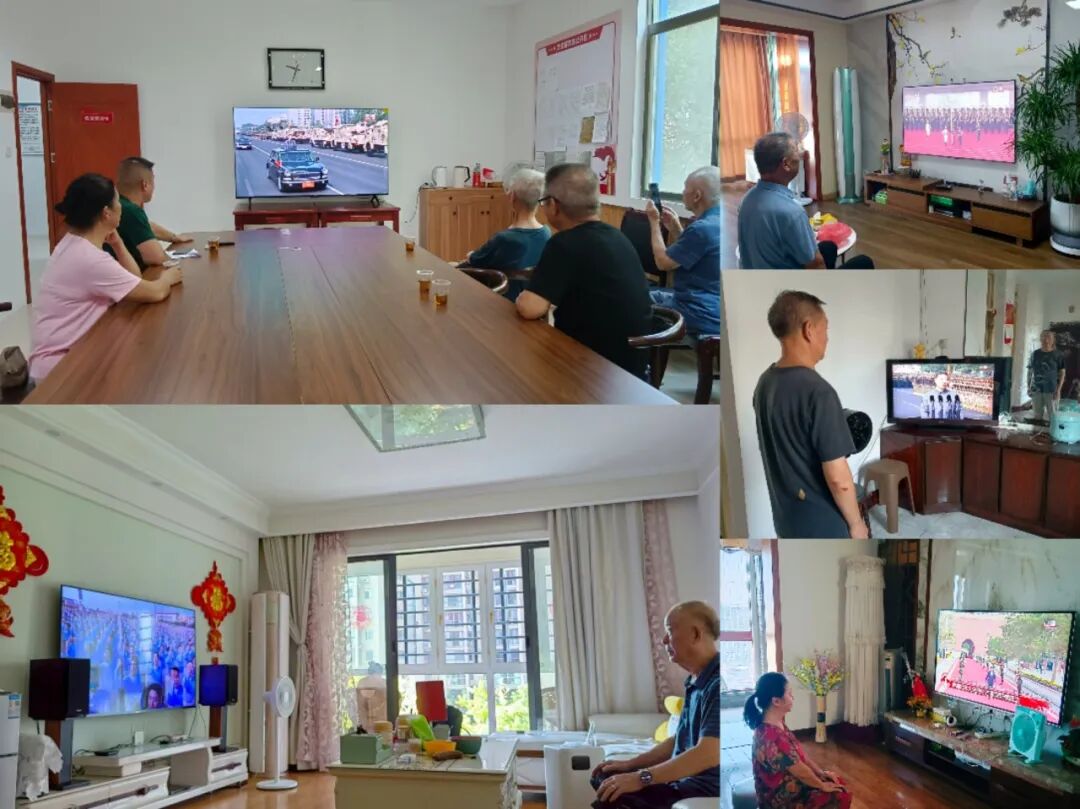 离退体人员收看纪念中国人民抗日战争暨世界反法西斯战争胜利80周年大会实况直播。