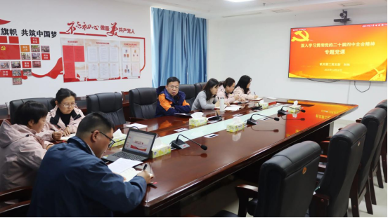 2025年12月31日,矿调所机关第一党支部在党员活动室召开党员大会,所党委书记、副所长陈学军以《深学笃行党的二十届四中全会精神,合力谱写矿调所高质量发展新篇章》为题,讲授专题党课,支部全体党员参加学习。