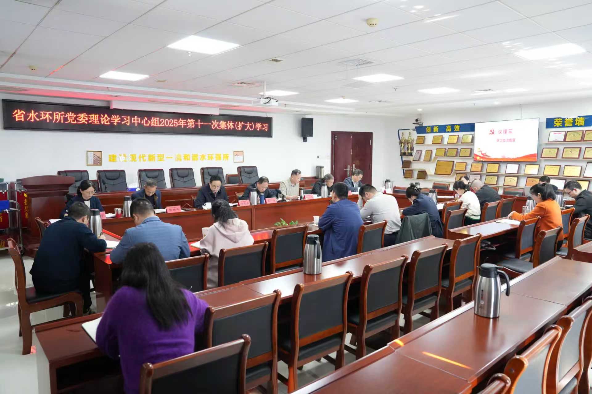 11月5日,亚洲最大线上娱乐城水环所党委理论学习中心组召开2025年第十一次集体(扩大)学习会议,专题学习党的二十届四中全会精神,党委书记韩冰主持,全体所领导和机关部室负责人参加学习。