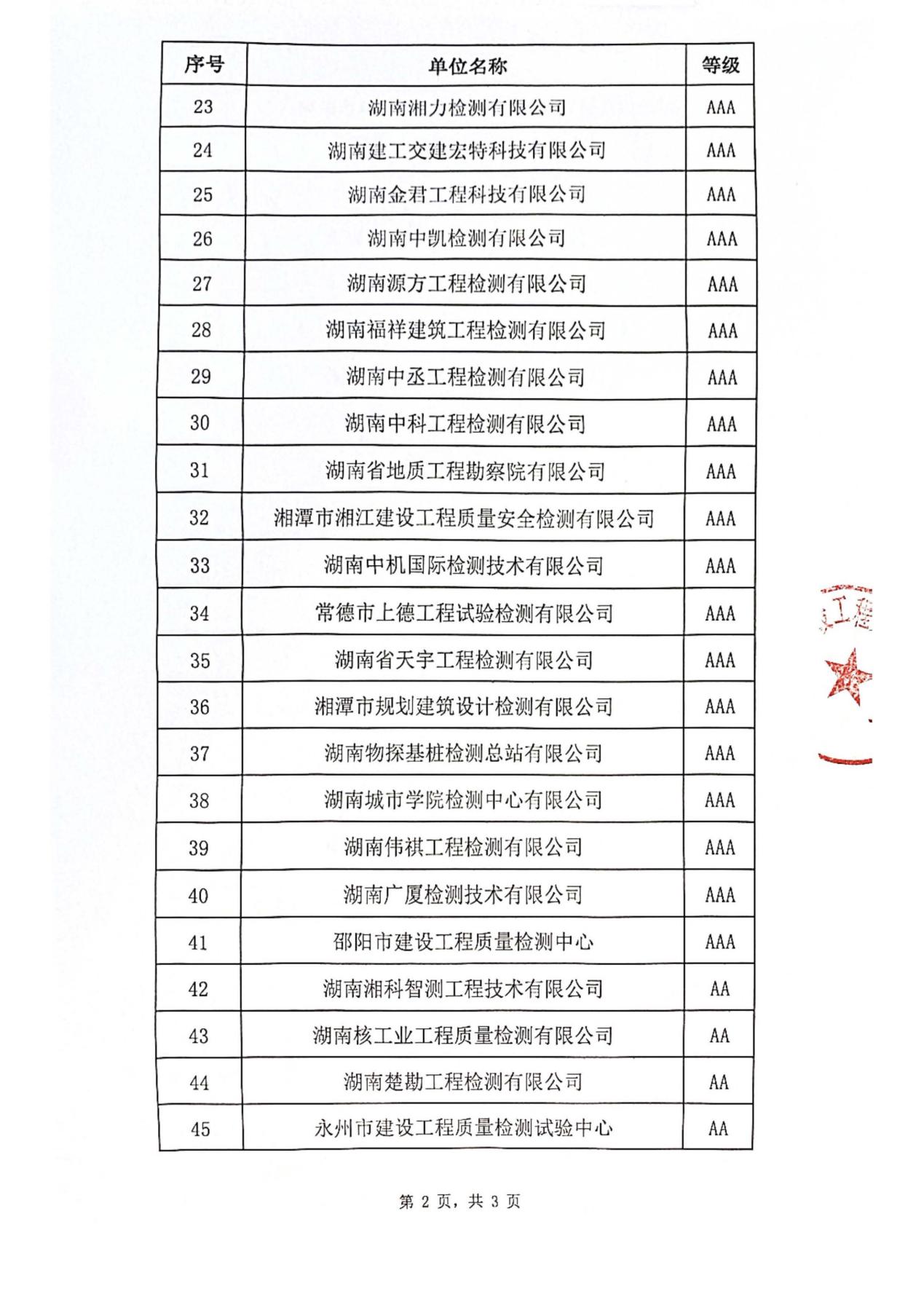 喜报|工勘院有限公司荣获湖南省2025年度建设工程质量检测机构信用AAA等级评价
