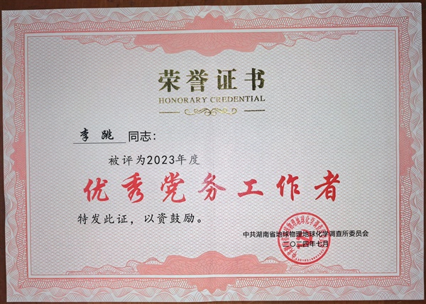 饱满热情、认真负责、锲而不舍是他对待工作的态度,工作扎实、为人厚道、无私奉献是身边的同事对他的评价。他是一名扎根基层一线19年的地质工作者,也是一名基层党支部书记,在平凡的岗位上兢兢业业、闪闪发光,他就是物化所邵阳综合党支部书记、环境地质院副院长李跳,先后获得“优秀党务工作者”、长沙市国资委系统“优秀共产党员”等荣誉称号,支部获评新葡京娱樂“先进基层党组织”。