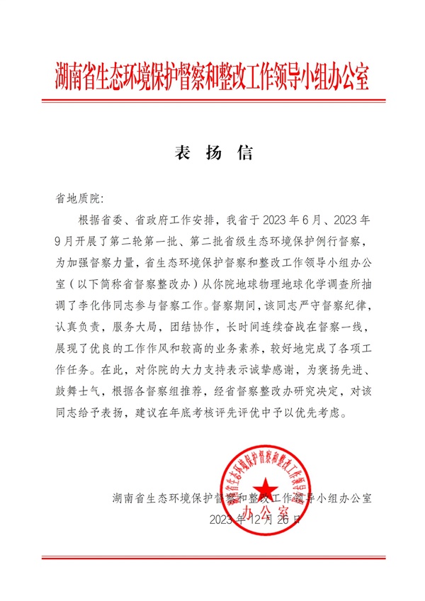 2022年11月,他被选派至湖南省生态环境厅自然生态保护处跟班学习,获得优秀鉴定意见;2023年9月,受省生态环境厅推荐借调到湖南省生态环境督察组赴衡阳市开展第二轮生态环境保护例行督察,其扎实的工作能力和吃苦耐劳的精神得到督察组的高度认可与发文表扬。