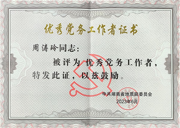 机会总是留给有准备的人。2021年7月,所在部门成功中标零陵区东湘桥矿区锰矿详查项目,合同价款达3700余万元,成为单位有史以来最大的地质勘查项目。这一项目的成功签约,为部门的生产经营提供了有力支撑,也为进一步拓展业务创建了良好的平台。功夫不负有心人,2023年,全院完成产值4000余万元,上交所管理费280余万元。她所带领的团队也被澳门新葡京评为“优秀党支部”,连续两年被评为“市场开拓先进单位”,周涛玲本人也荣获澳门新葡京“优秀党务工作者”、所“优秀共产党员”等荣誉称号,她的家庭被社区评为“十星级文明示范家庭”。