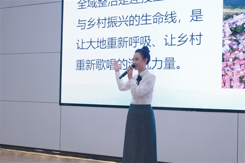 谢岚茜在演讲《大地医者:以修复之笔,共绘山河家园》中,生动诠释了全域土地综合整治的实践价值。她以物化所参与的浏阳沙市镇全域土地综合整治项目为典型案例,通过详实的数据和鲜活的整治前后对比,系统展示了“大地疗法”如何让贫瘠土地重焕生机。“每一寸被修复的土地,都是写给未来的深情书简;每一个躬身参与的我们,都是大地重焕生机的执笔人。”谢岚茜用专业而富有感染力的语言,生动诠释了土地科技工作者的使命与担当,赢得了现场观众的阵阵掌声。