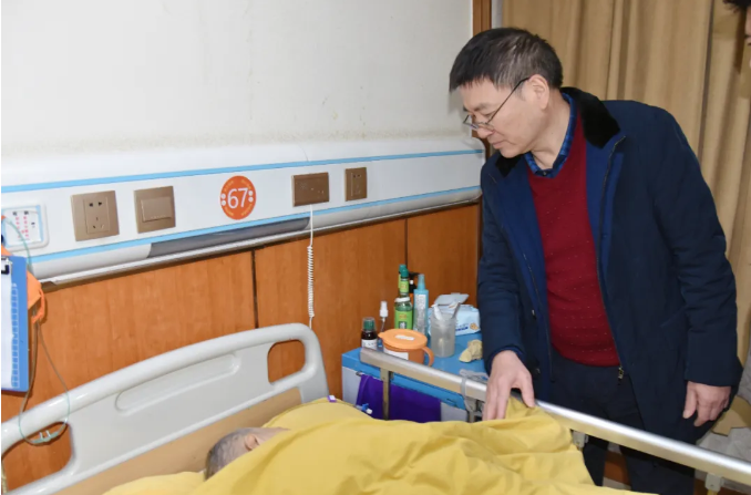 随后,袁安群赶赴医院,探望因年老多病正在住院治疗的张顺英。在病房里,他轻声询问老人的病情恢复情况和后续诊疗安排,叮嘱她要遵从医嘱、安心疗养,务必保重身体;同时嘱托家属要悉心照料,给予老人全方位的关怀陪伴,助力老人早日康复。