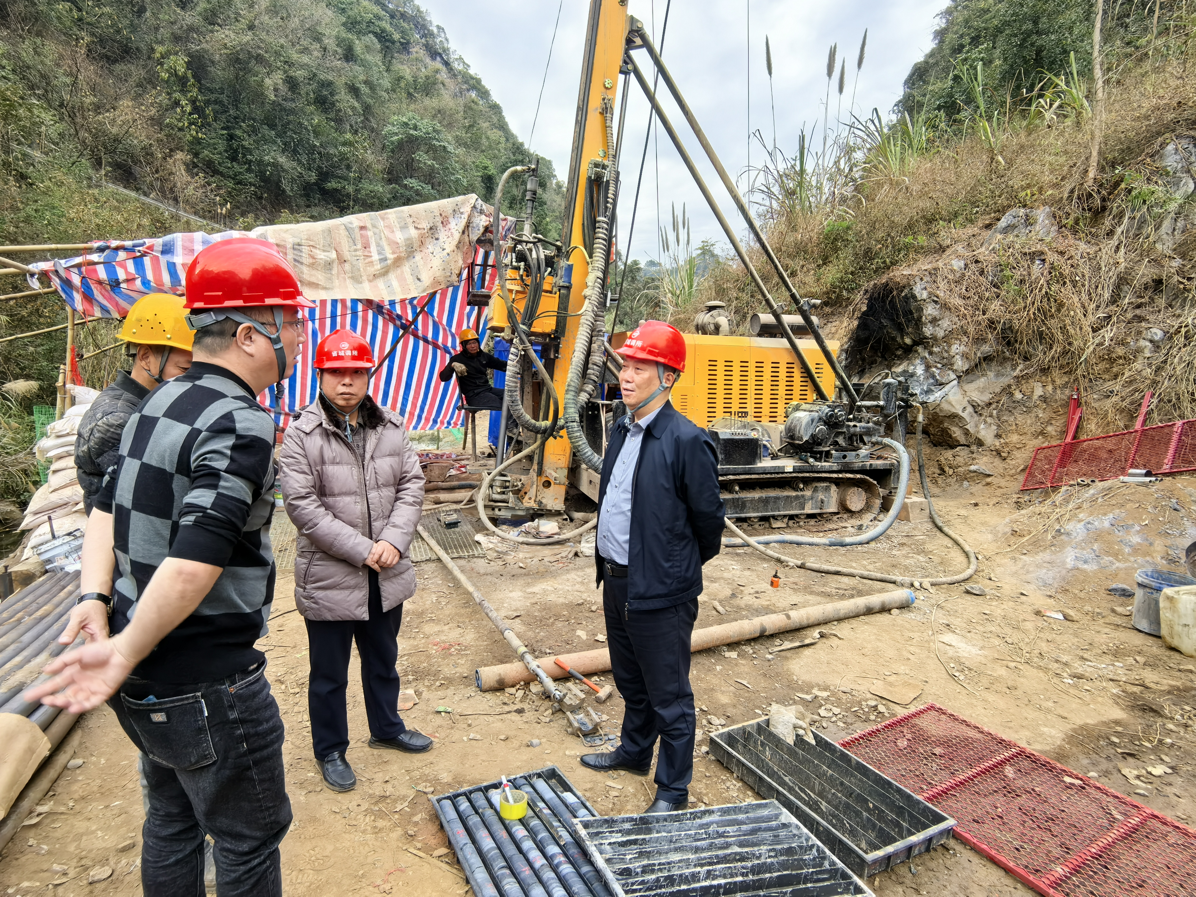 1月14日至15日,省城调所所长、党委副书记陈俊华带队对所地温能中心广西河池南丹县矿产勘查钻探项目施工工地开展安全检查及慰问,副所长蒋光旭、肖湘辉及相关部室负责人参加。