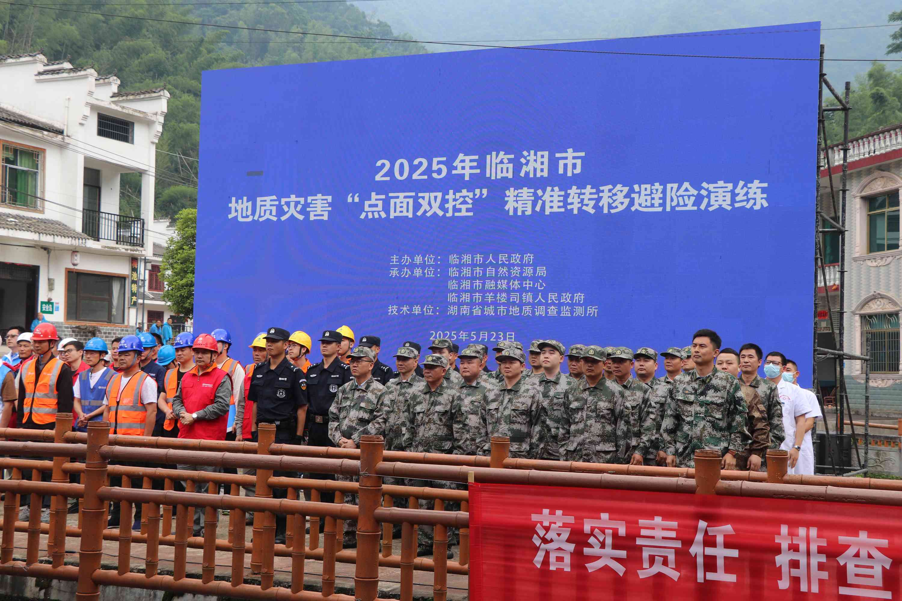5月23日,湖南省岳阳市临湘市在羊楼司镇梅池村完成基于地质灾害“点面双控”机制的实战化避险演练。作为全国地质灾害重点防治区创新试点,此次演练突破传统“隐患点单点防控”模式,在全国率先构建“隐患点+风险区”双维度防控体系,为山区城镇地质灾害防治探索新路径。