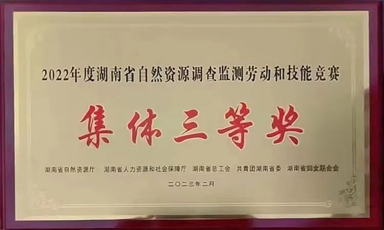 城调所荣获2022年度湖南省首届自然资源调查监测劳动和技能竞赛“集体三等奖”