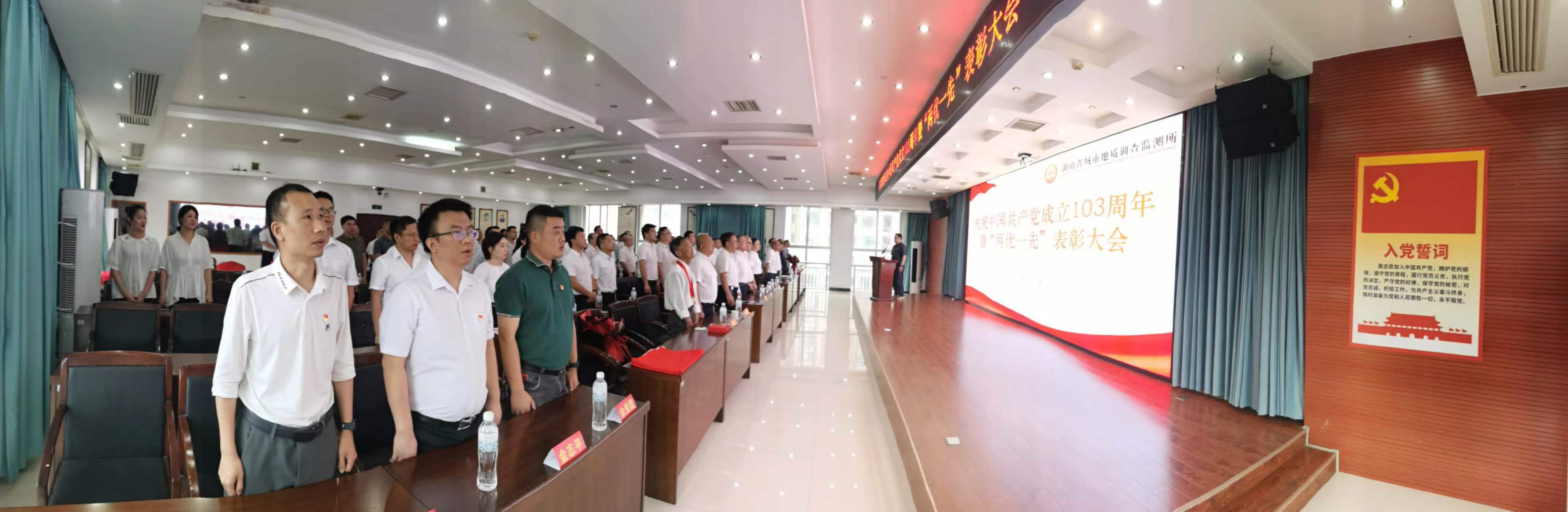 大会在庄严雄壮的国歌声中拉开序幕,全体与会人员起立唱响国歌。表彰大会由副所长蒋光旭主持,4名新发展的党员及全体参会党员面向党旗,紧握右拳,庄严宣誓。通过重温入党誓词,激励全所每一名党员积极进取,为党的事业奋斗终身的决心。
