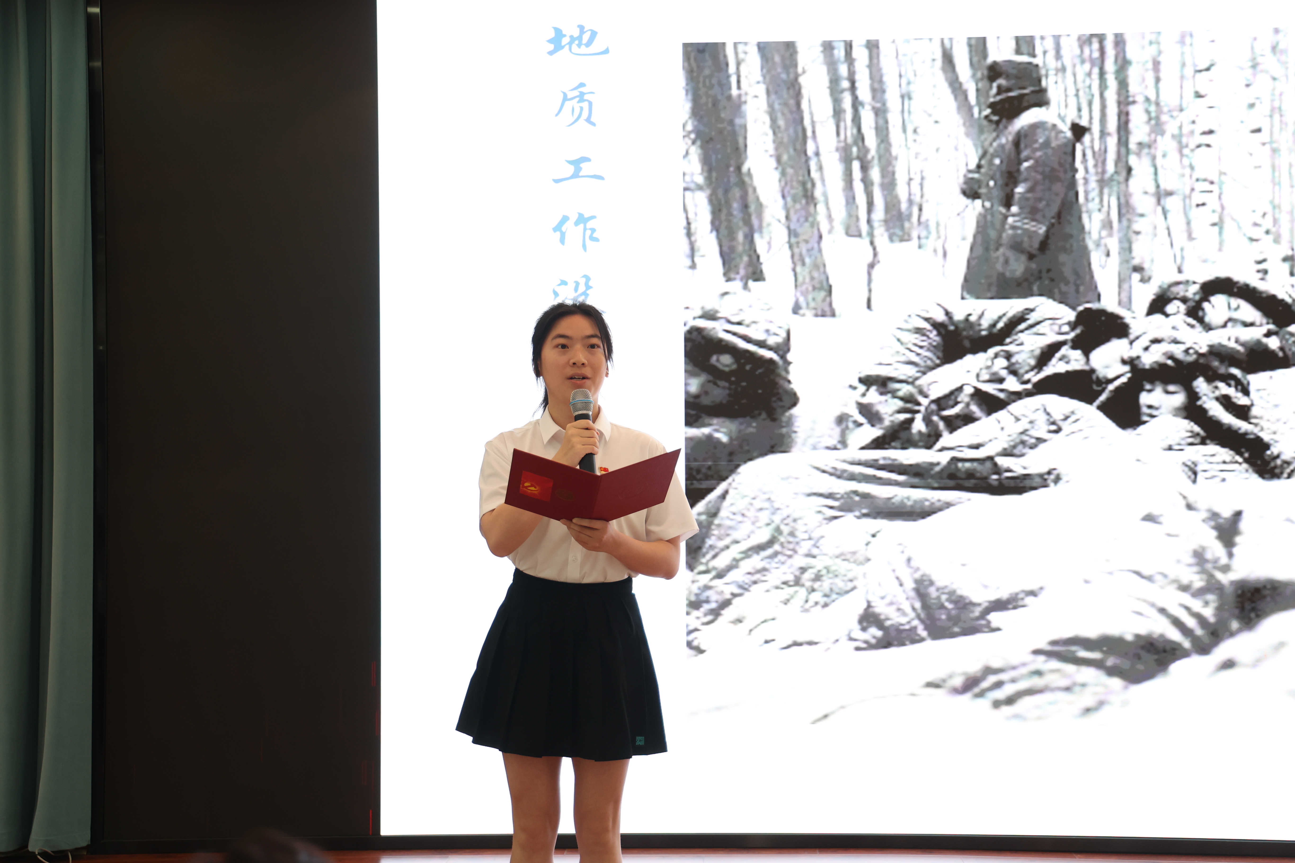 “这一家人的经历仅仅是我国地质工作浪潮中的一朵浪花、是千万地质人的缩影,他们崇尚地质光荣传统,他们甘于奉献、不求名利,始终战斗在地质找矿的前沿,艰苦奋斗的优良作风已经融入了他们的身心骨血。”朱娟以三代地质人的传承为题,引申到工作后要自觉恪守清正廉洁的红线,娓娓道来、入情入理。