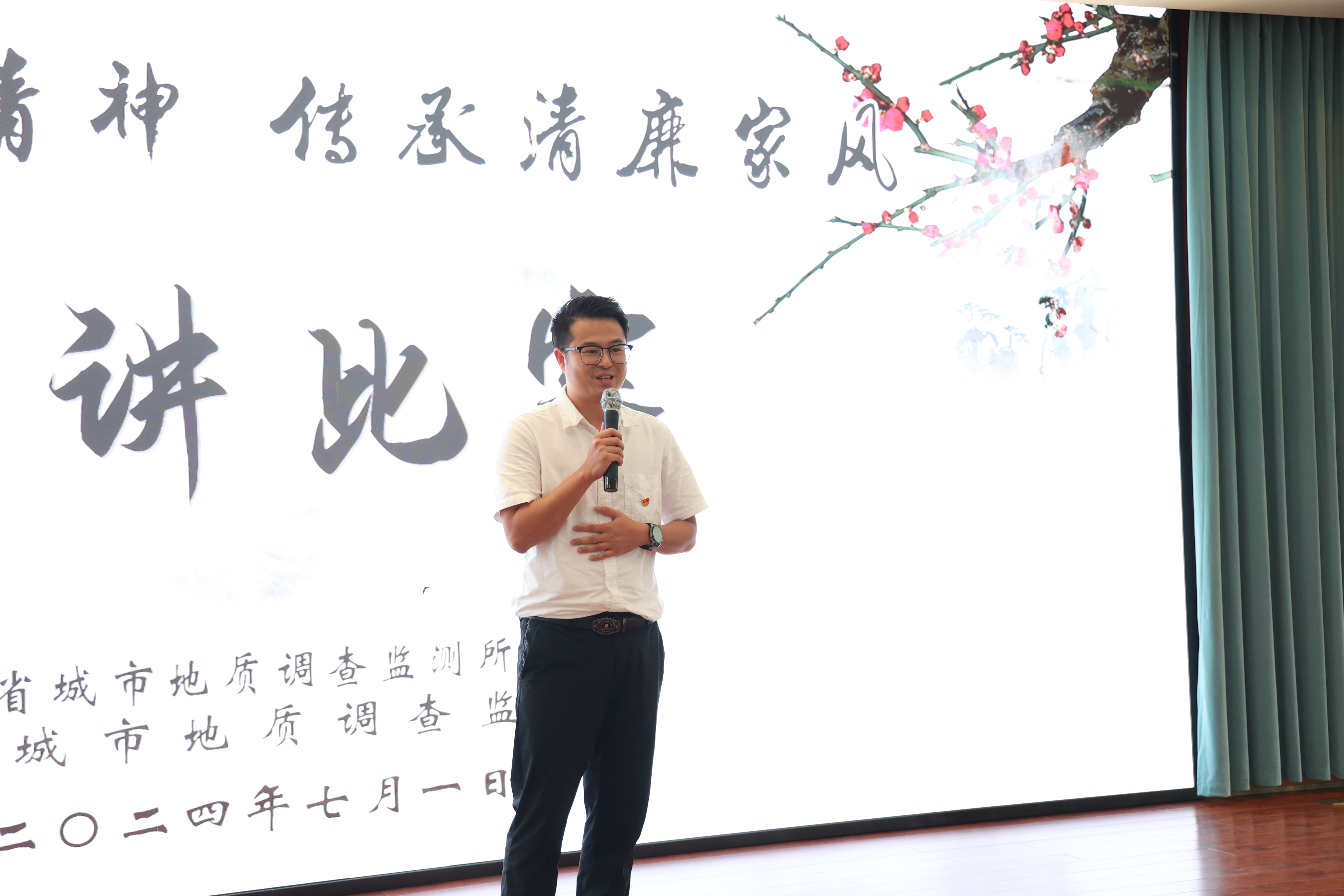 活动在主持人张苗的引领下拉开帷幕。13名参赛选手围绕“赓续地质精神 传承清廉家风” 主题,从各自的工作岗位出发,用真实的事例、朴实的语言、真挚的感情,叙说红色家风、先贤家教和清廉家庭故事,讲述了身边地质人基层清廉建设工作,畅谈了青年干部廉政教育和勇担使命的感受,引发在场党员强烈的情感共鸣,激发出见贤思齐、奋勇担当的干事创业决心。