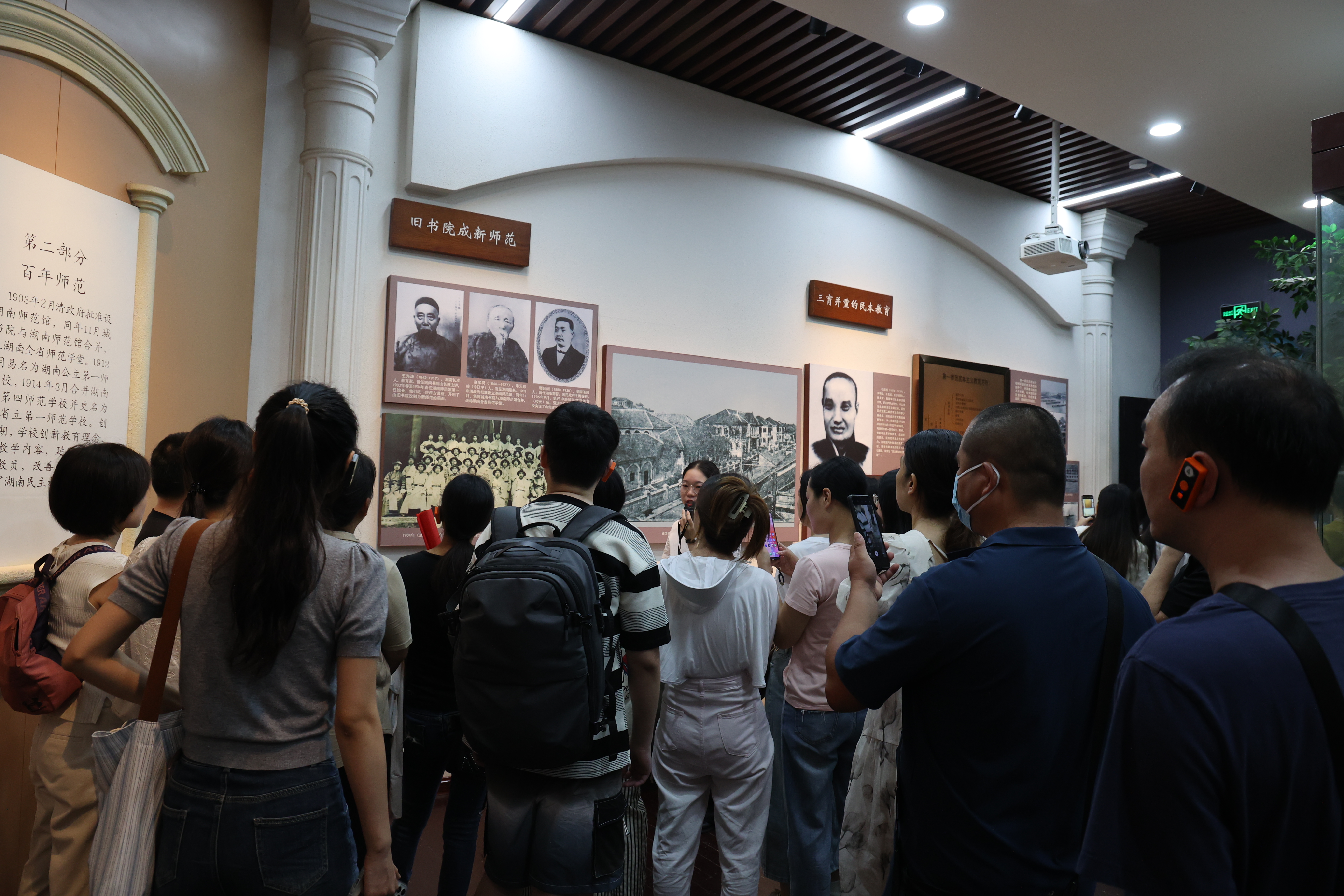 湖南第一师范是湖南革命青年的大本营,一代伟人毛泽东在此求学、工作长达8个春秋,并在此从事中国共产党的创建等一系列活动。在这里,毛泽东实现了由学生到职业革命家的转变,由民主主义者向伟大的马克思主义者的转变。全体党员怀着敬重的心情,参观了青年毛泽东纪念馆的5个展厅以及毛泽东当年就读的八班教室,其中毛泽东的“三不谈”及独特的健身方式等,让大家充分感受到一代伟人的远大志向和坚强毅力。