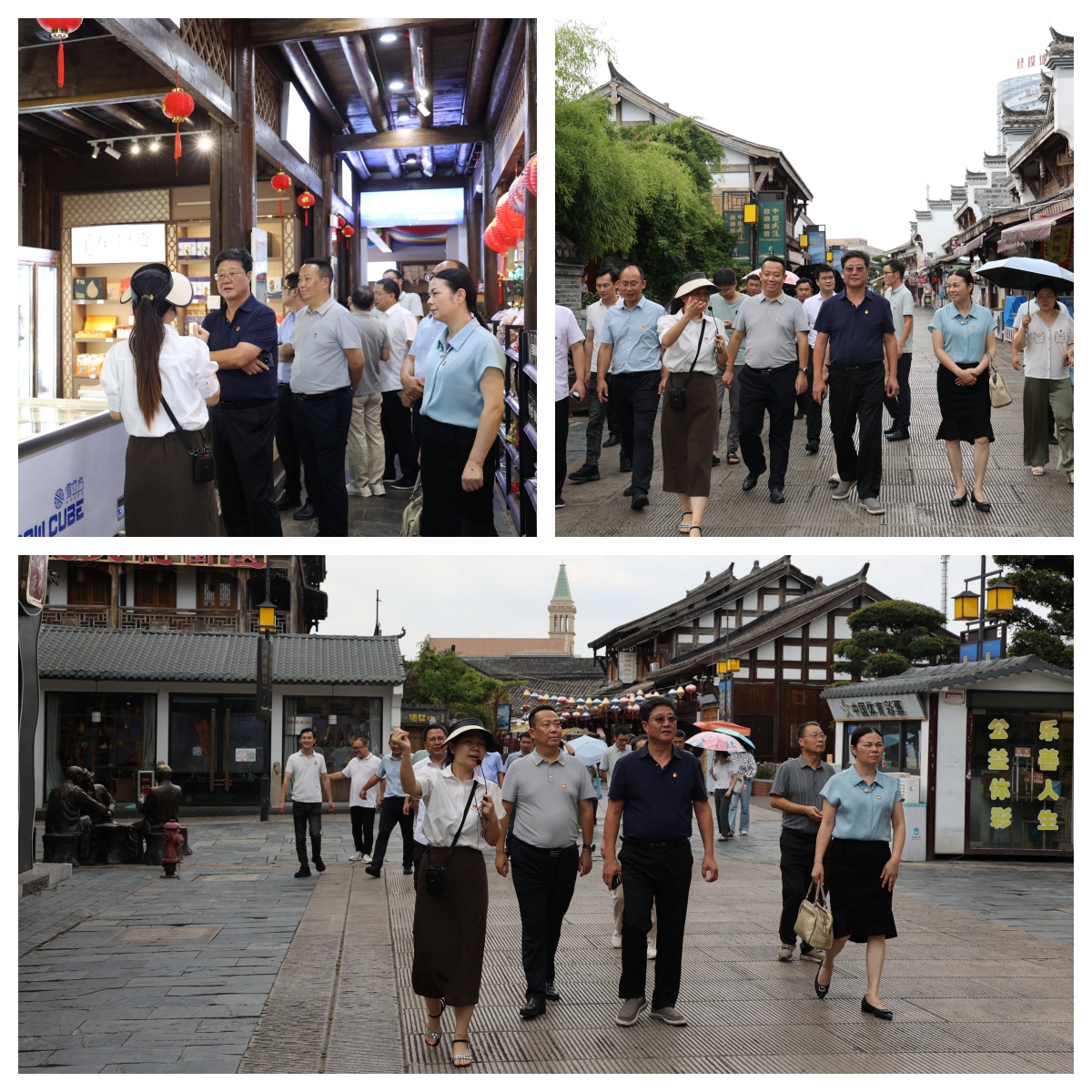 在常德市武陵区河街,党员们在讲解员带领下,沿着习近平总书记考察的足迹,先后参观了乡村振兴馆、鸳鸯走马楼、常德老照片馆,直观感受这座城市的历史底蕴和文化魅力,近距离感受了常德丝弦、常德高腔、常德渔鼓等非遗项目,大家一路听、认真看、用心学、深刻悟。在乡村振兴馆会议室,全体党员高举右拳,庄严宣誓,重温入党誓词,并集中观看了专题辅导视频,重温了习近平总书记在湖南考察时重要讲话精神。