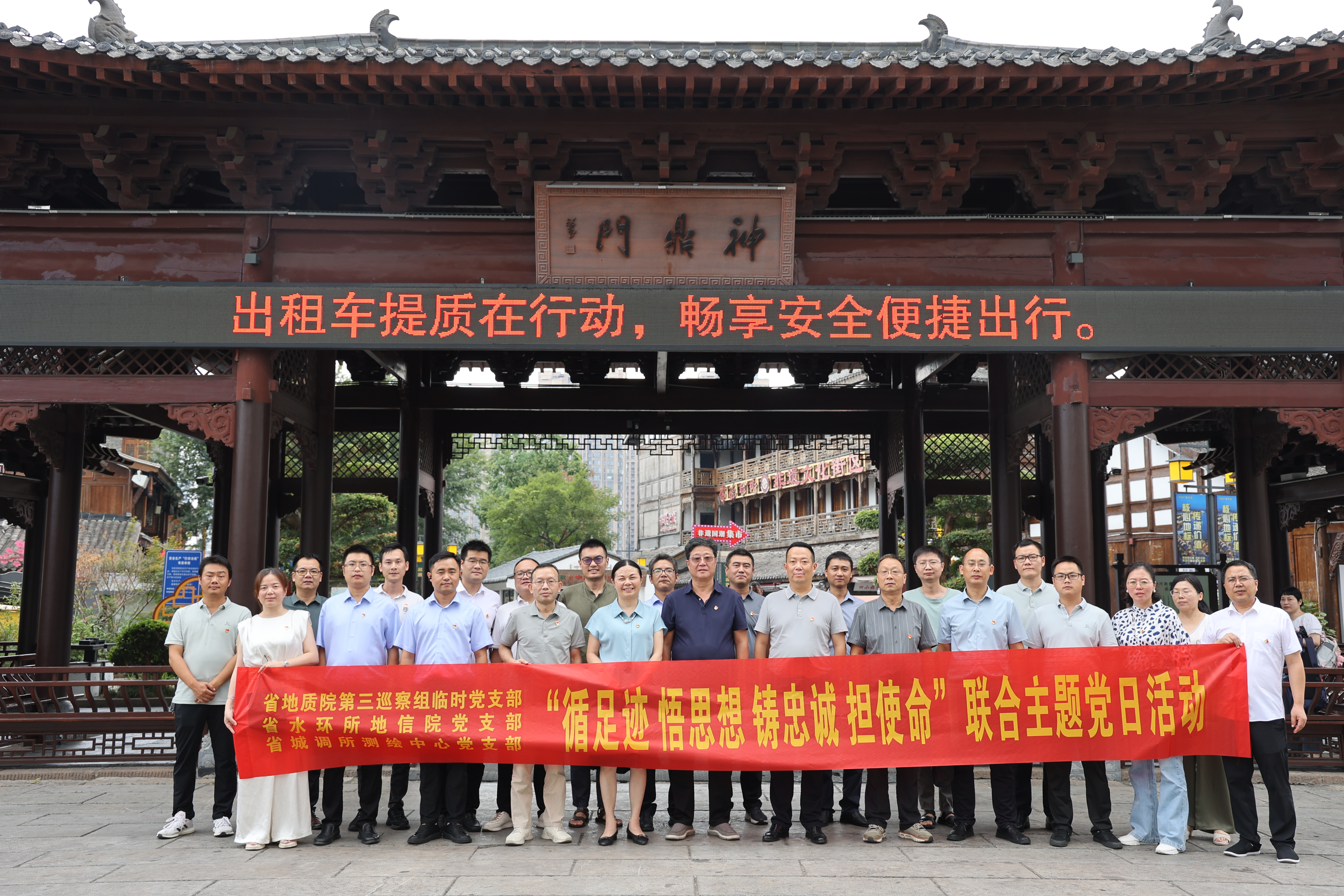 为进一步发挥党建引领作用,构建“资源共享、优势互补、共同提高”的联动机制,推动党业深度融合,9月19日,院党委第三巡察组临时党支部与省城调所测绘中心党支部、省水环所地信院党支部,以“循足迹 悟思想 铸忠诚 担使命” 为主题,开展联合主题党日活动。院党委第三巡察组组长、支部书记贺转利,副组长、院一级调研员唐能凤,省水环所所长康汤、党委书记韩冰,省城调所所长陈俊华、党委书记张健、副所长郭亚平、纪委书记朱运池及支部部分党员参加了活动。