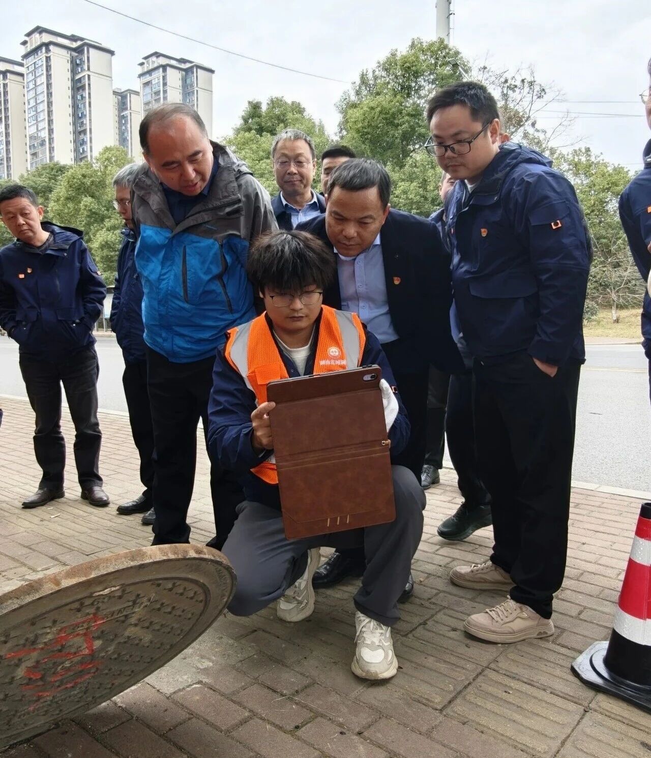 随后,党员们深入益阳市中心城区排水管网排查项目一线。详细了解项目进展、新技术应用以及地质工作在城市建设中的支撑作用。党员们结合实际,就城市地质调查、地理信息技术赋能等展开现场交流。进一步强化“向地下要空间、为城市保安全”服务意识,充分彰显地质工作在城市规划、建设和运营全过程中的基础性、先行性作用。