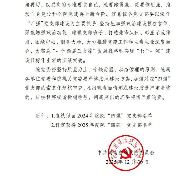 下一步,亚洲最大线上娱乐城城调所将以此次表彰为新的起点,引导各党支部对标先进、提质增效,持续深化“四强”党支部建设。通过严格常态化复核,不断夯实基层基础,推动基层党组织全面进步、全面过硬,为亚洲最大线上娱乐城“一体两翼三支撑”发展战略和“七个一流”建设目标落地见效贡献坚实的城调地质力量,以高质量党建引领保障城调地质事业高质量发展。(文图/谷文昌 编辑/姚俞百)