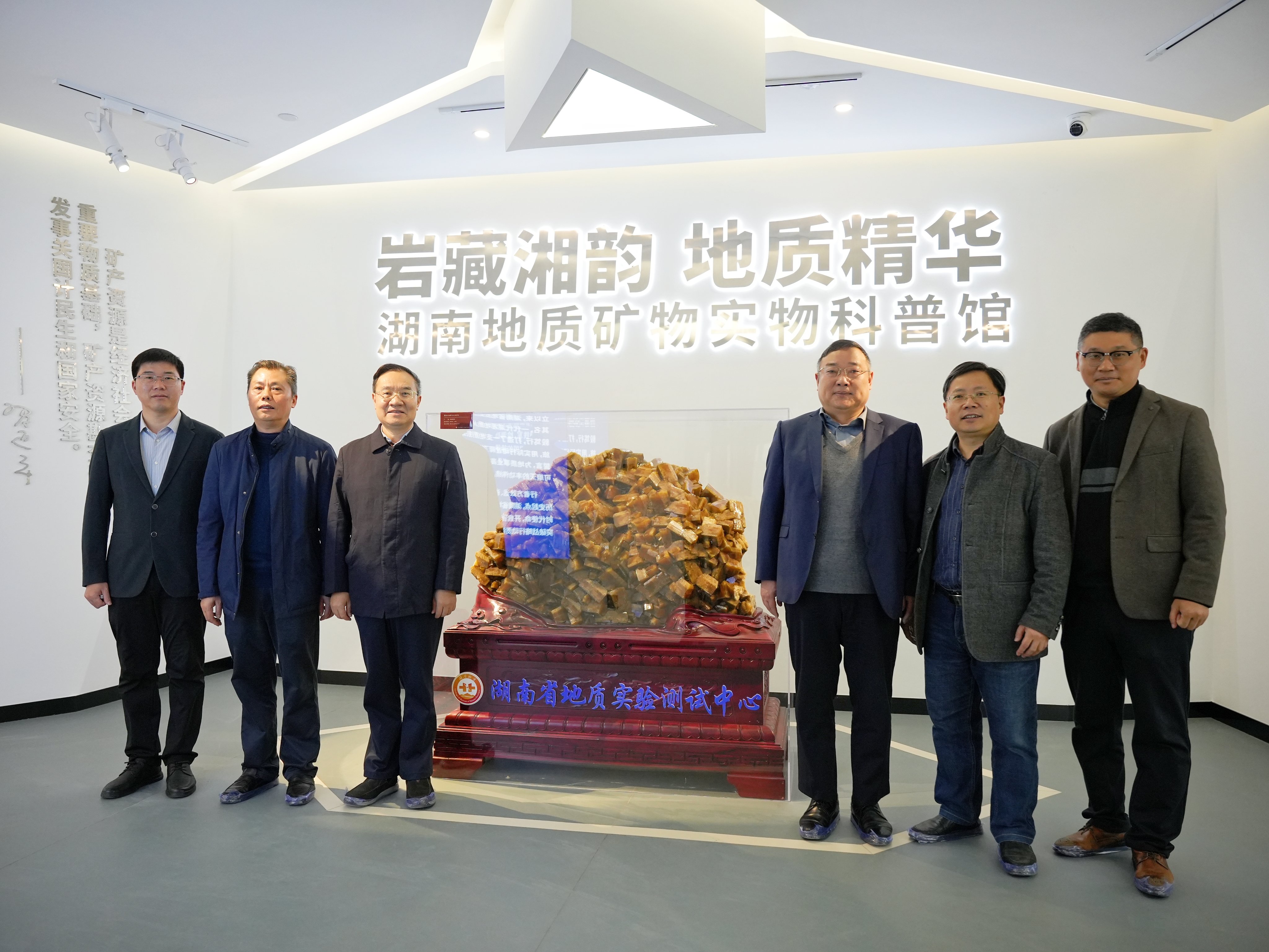 会议召开前,在省地质实验测试中心党委书记、平台主任谢先江的陪同下,参会专家实地调研了同位素地球化学实验室、地质矿物实物科普馆等核心设施。实验室主任彭君详细介绍了湖南首家同位素实验室的运行情况及科研应用成果,科普馆馆长辛虹瑾引导专家们参观了地质标本展区与科普互动区域,直观展现了平台在基础建设与科普服务方面的扎实成效。