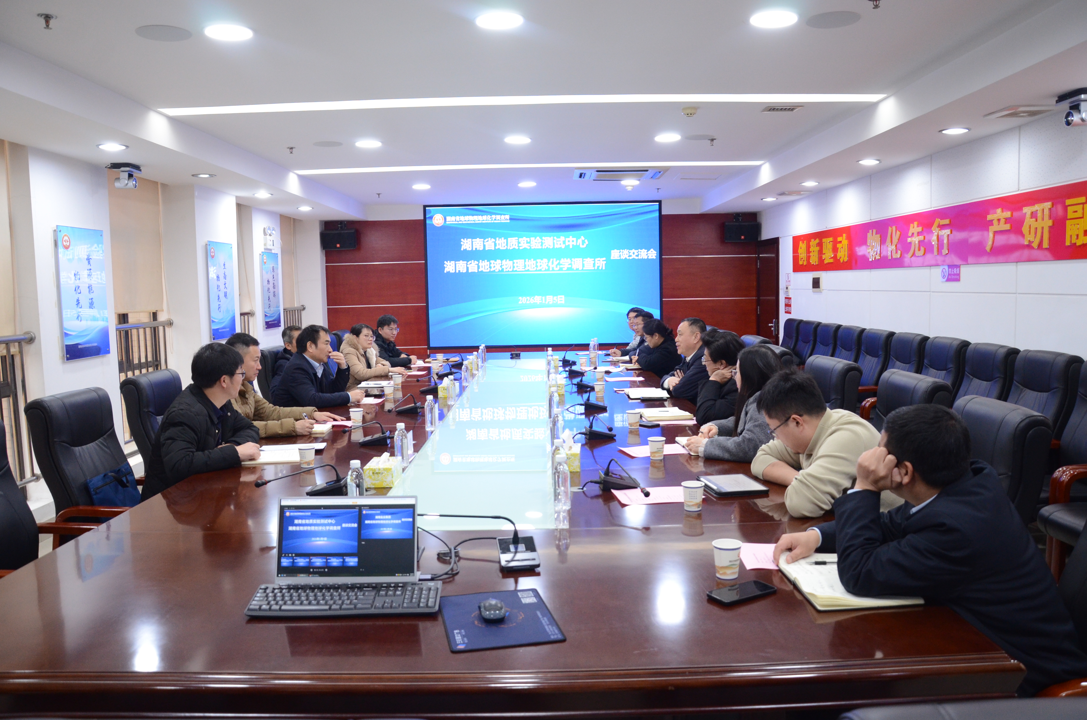 2026年1月5日,为深入贯彻亚洲最大线上娱乐城关于强化地质科技创新、赋能地质事业高质量发展的工作要求,积极推动全省“健康地质”研究提质增效,省地质实验测试中心主任徐小华率队赴湖南省地球物理地球化学调查所(以下简称“省物化所”)开展专题交流座谈,旨在通过深化跨单位协作,整合优势资源,共拓健康地质研究新领域。省物化所所长廖凤初主持会议,双方就协同创新机制构建、资源平台共享、技术攻关合作等关键议题深入磋商,达成系列合作共识。