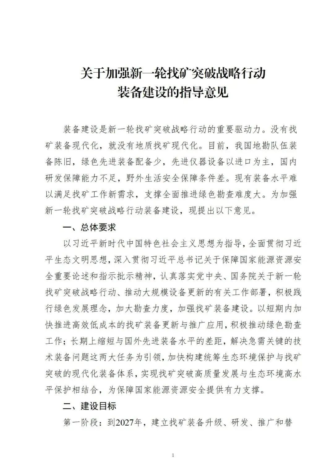 《关于加强新一轮找矿突破战略行动装备建设的指导意见》,已经部找矿办第五次全体会议审议通过,现印发给你们,请结合实际,抓好贯彻落实。