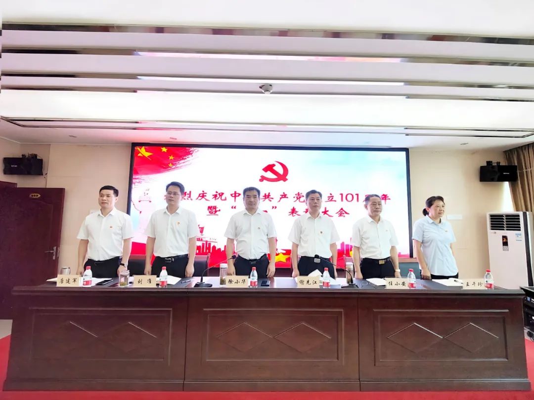 为庆祝中国共产党成立101周年,喜迎党的二十大胜利召开,6月30日上午,湖南省地质实验测试中心召开了庆祝建党101周年暨“七一”表彰大会,中心党委班子成员、受表彰同志及全体在职党员参加会议。