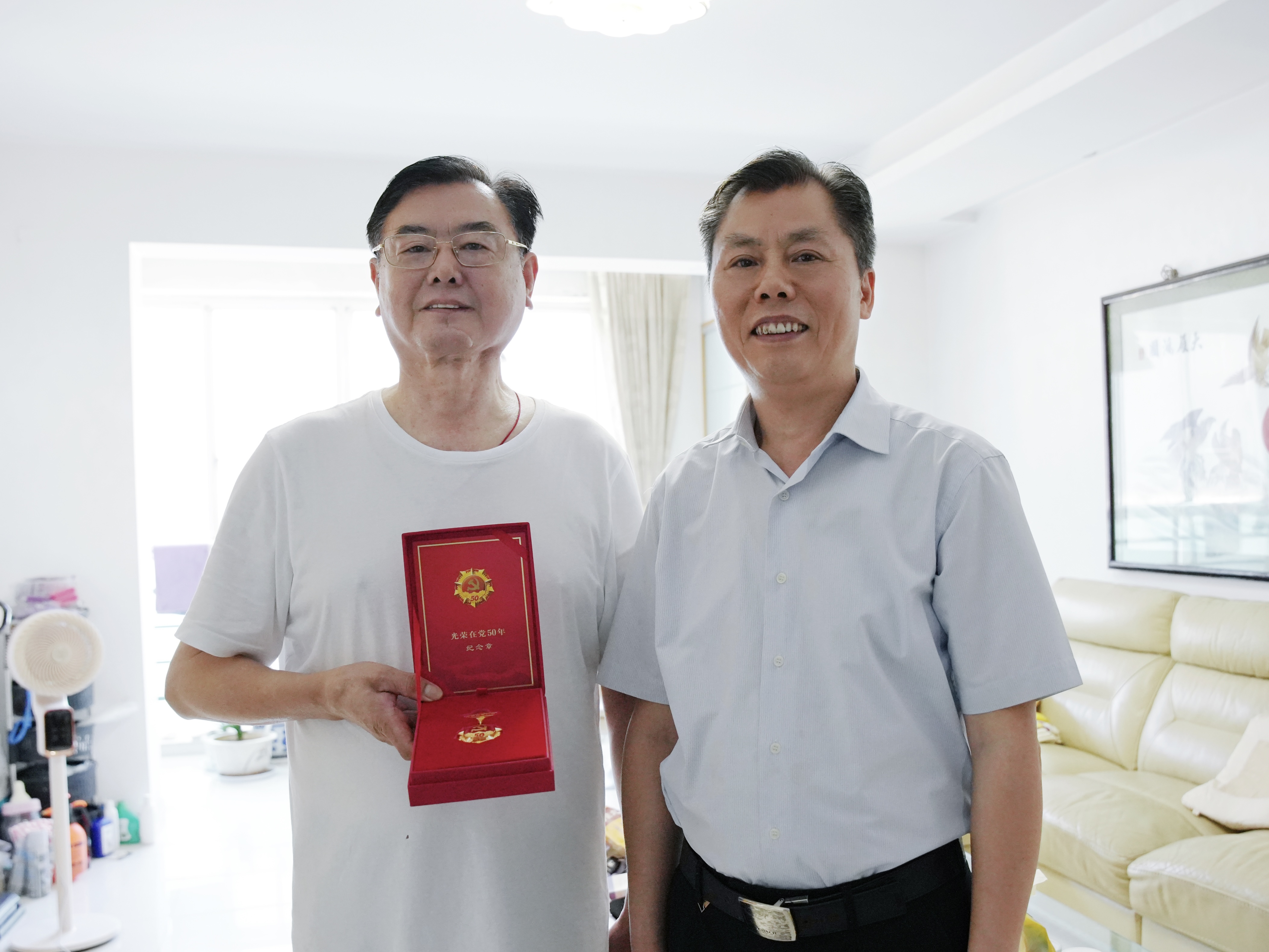 五十载峥嵘岁月,五十载党龄芳华。7月5日上午,党委书记谢先江前去慰问老党员邓兆初,为他颁发“光荣在党50年”纪念章。