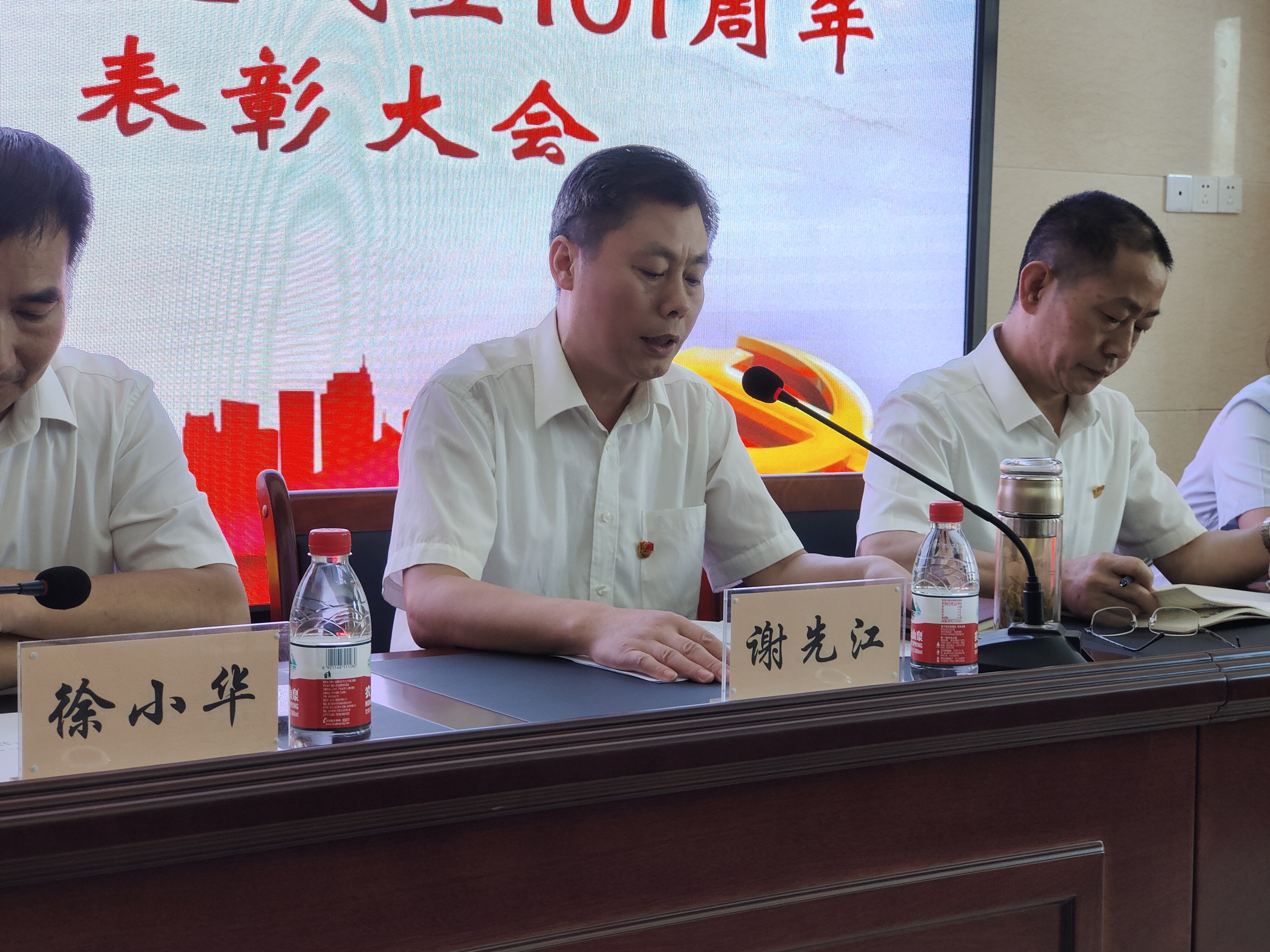 为庆祝中国共产党成立101周年,喜迎党的二十大胜利召开,6月30日上午,湖南省地质实验测试中心召开了庆祝建党101周年暨“七一”表彰大会,中心领导班子成员、受表彰同志及全体在职党员参加会议。中心党委书记谢先江作“七一”讲话,主任徐小华主持会议。