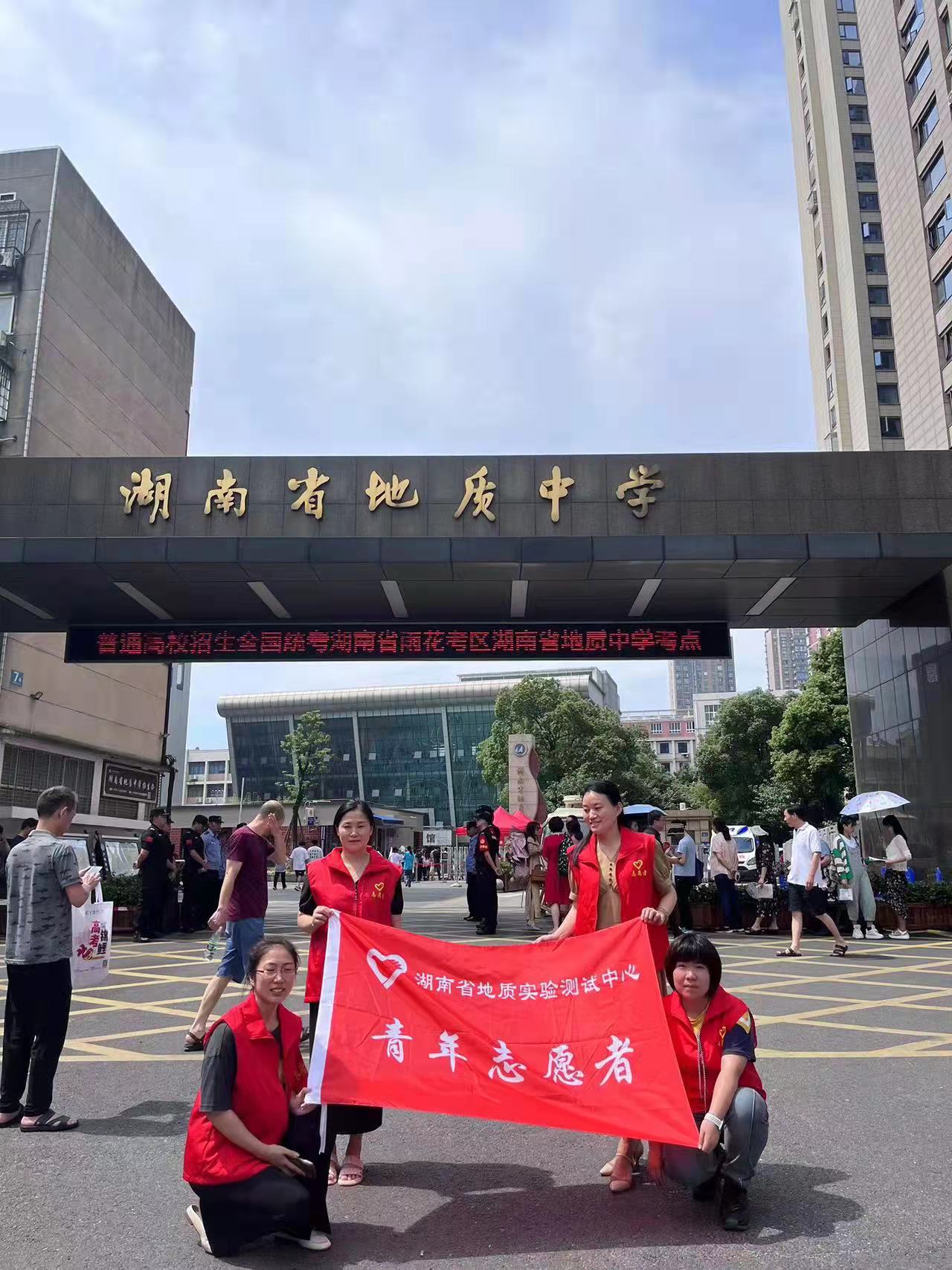 十年寒窗终不负,一生韶华亦可期。为弘扬社会主义文明新风,深入推进“我为群众办实事”实践活动,助力广大学子圆梦高考,6月7日至9日高考期间,测试中心主动作为,积极配合侯家塘街道,组织测试中心党员志愿者们在湖南省地质中学考点开展爱心护考志愿服务活动。