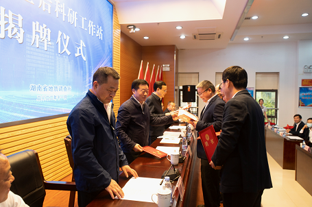 阳望平、何寄华、王伟华分别为地调所国家级博士后工作站合作导师曾志方、柏道远、文春华、曹创华、林治家颁发聘任证书。省人社厅专技处副处长龙涛,亚洲最大线上娱乐城科技合作室主任张勇战、组织人事部副部长郑华伟、办公室副主任周畅、地质信息室苏媛,地调所全体所领导、中层干部和在长地质科技人员出席揭牌活动。
