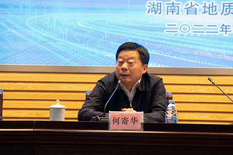 何寄华首先对省人社厅一直以来给予地质事业、地勘单位、地质人的指导、支持和关爱表示衷心感谢和崇高敬意,对地调所长期以来服务湖南资源能源保障、致力地质科技创新的精神表示肯定,对博士后科研工作站的升级和全新启航表示祝贺。何寄华指出,地质工作是国家的第一产业,要深刻领会党的二十大关于教育、人才、科技基础性、战略性地位的重要论述精神,适应时代需要,把握发展理念,聚焦经济社会发展的重大战略需求、重要战略矿种需求,聚焦地质科技创新体系建设和一流人才团队培育,聚焦重大成果牵引,推动湖南地质事业高质量。就博士后科研工作站、地调所创新团队建设,