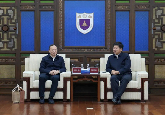 谈文胜与南京大学副校长陆现彩举行会谈。