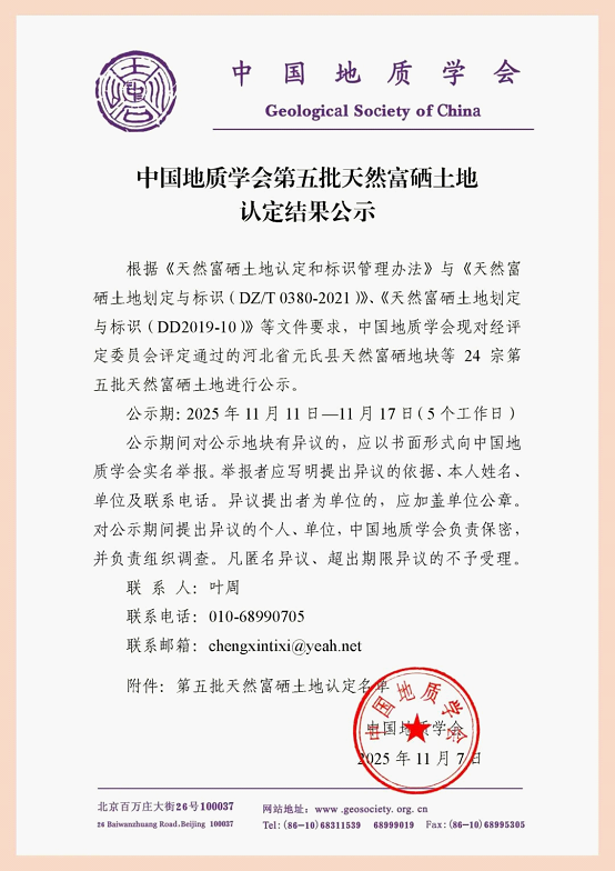 喜讯 澳门新葡京地调所申报的麻阳县天然富硒地块成功入选全国第五批名录