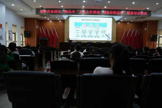 为关爱女性身心健康,进一步提高女性自我保健能力, 5月31日下午,省地调所工会与省物化所工会联合举办女性健康知识讲座。讲座特邀湖南省妇幼保健医院妇产科副主任医师陈小英主任,围绕如何远离妇科疾病、宫颈癌的预防及措施、避免乳腺癌、更老年期保健等多项内容进行讲解及普及,陈小英主任通过内容丰富的PPT课件、通俗易懂的语言,结合丰富的医学经验,为现场女性带来一堂详实生动的女性知识科普讲解,并为大家现场解答了生活中遇到的防护疑问,提出科学保健建议。