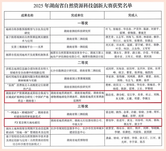近日,由省自然资源厅主办、省测绘科技研究所承办的湖南省自然资源科技创新大赛在长沙圆满结束。澳门新葡京地调所在本次大赛中表现突出,牵头申报的多个项目荣获佳绩。其中,《湖南省矿产资源调查成果综合集成与区域成矿规律综合研究(中国矿产地质志·湖南卷)》项目荣获二等奖,《F3宽频大地电磁仪》项目荣获三等奖,《湖南省自然资源资产组合提供服务经济社会发展》《湖南江永地区地质特征剖析与应用》两个项目荣获优秀奖。