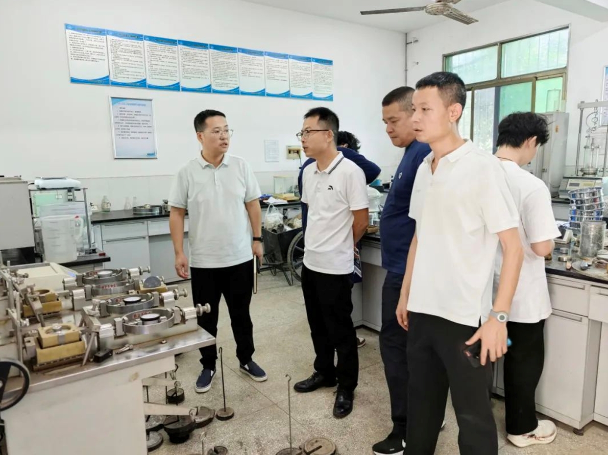 副所长曹创华(左一)在测试中心实验室开展安全检查。