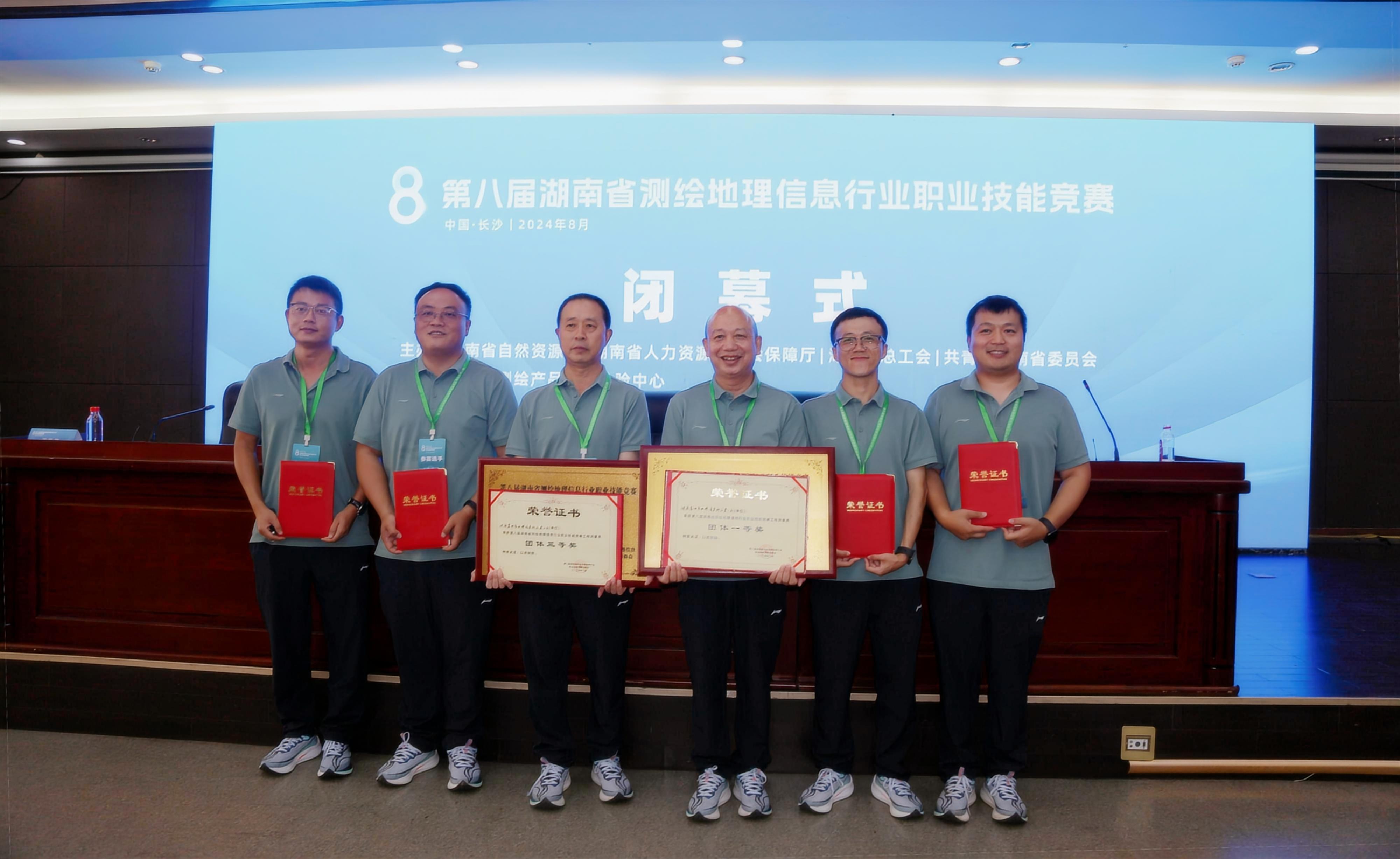 8月21日下午,由湖南省自然资源厅、湖南省人力资源和社会保障厅、湖南省总工会、共青团湖南省委员会联合举办,省测绘产品质量检验中心承办的第八届湖南省测绘地理信息行业职业技能竞赛闭幕。地信所参赛队与来自全省26支队伍50余名经层层选拔的测绘高手在37度的酷暑高温下同台竞技,经过激烈角逐,最终以团体第一名的成绩一举夺冠,登上了湖南省测绘地理信息行业职业技能竞赛最高领奖台,我所参赛选手郭亮登、许涛分获个人第二名和第三名,颁奖现场掌声雷动。