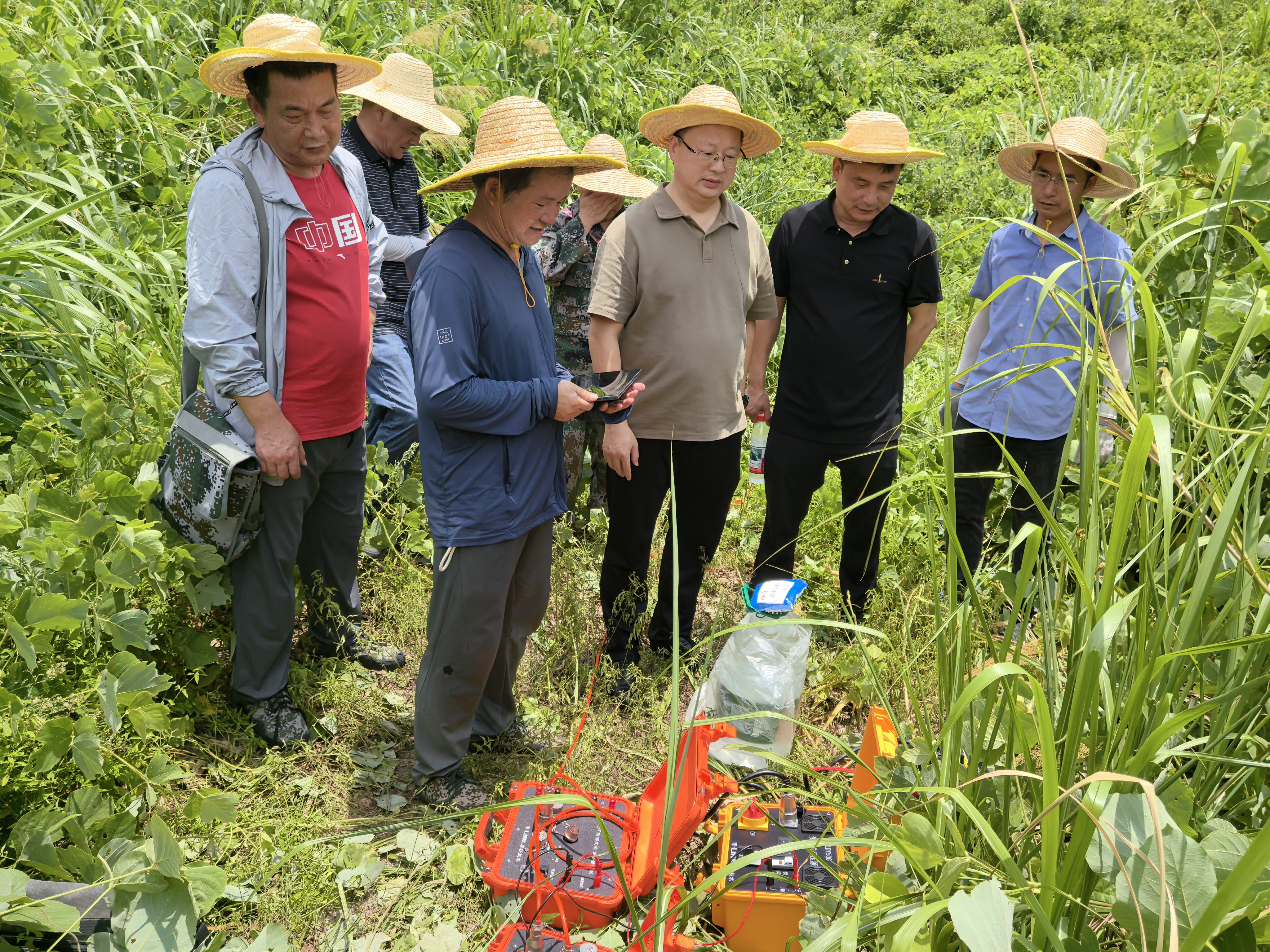 在衡山县东湖镇地灾评估项目现场,樊任武详细听取了项目进度汇报,深入物探勘查与钻探施工区域,与工作人员亲切交谈,叮嘱大家要牢记野外作业安全事项,多加防范,相互照顾,特别是野外高温作业环境一定要注意采取防暑降温措施,确保安全。