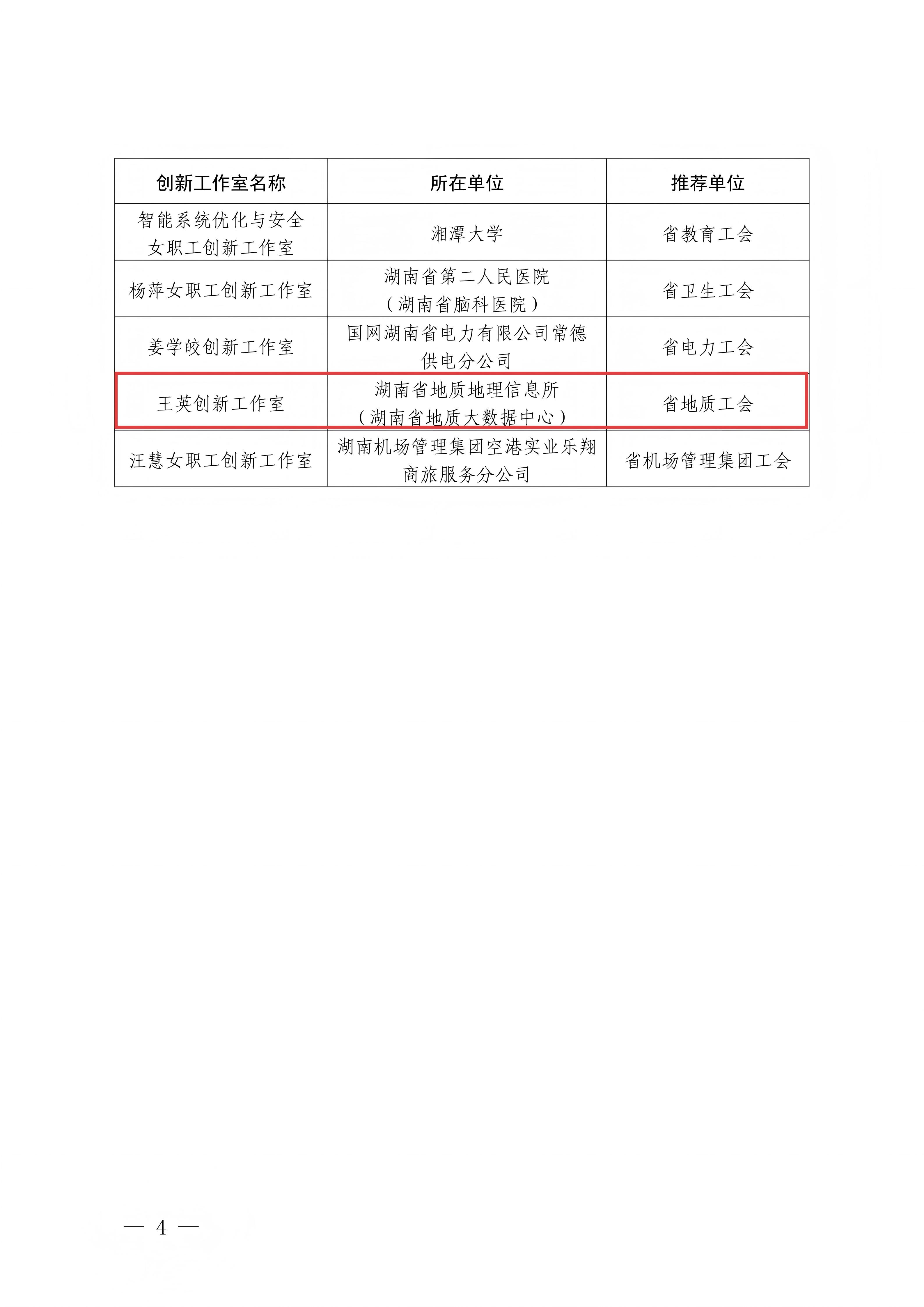 近日,在湖南省总工会开展的2025年度湖南省女职工创新工作室推荐活动中,由新葡京娱樂地信所工会申报,省地质工会推荐的王英创新工作室,经湖南省总工会女职工委员会综合审定,被确定为“湖南省女职工创新工作室”。省总工会将下拨专项资金,用于对其创新工作的专项补助。