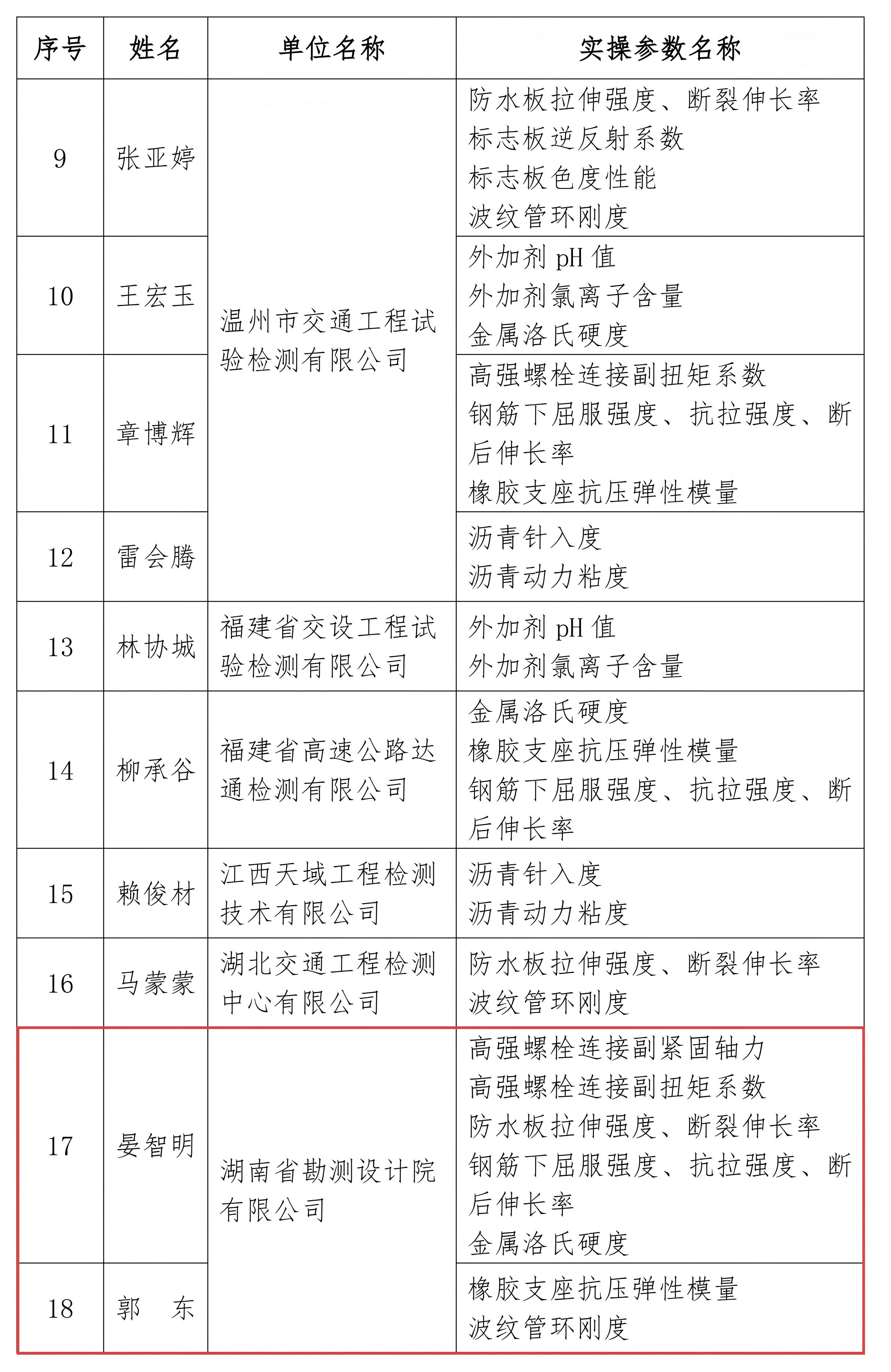 近日,澳门新葡京地灾所下属省勘测设计院有限公司在中国交通建设监理协会组织的“2025年度公路水运工程质量检测能力验证活动”表现优异,受到通报表扬,其检测中心晏智明、郭东两位技术骨干凭借精湛的专业技术脱颖而出,获评“表现突出人员”称号。