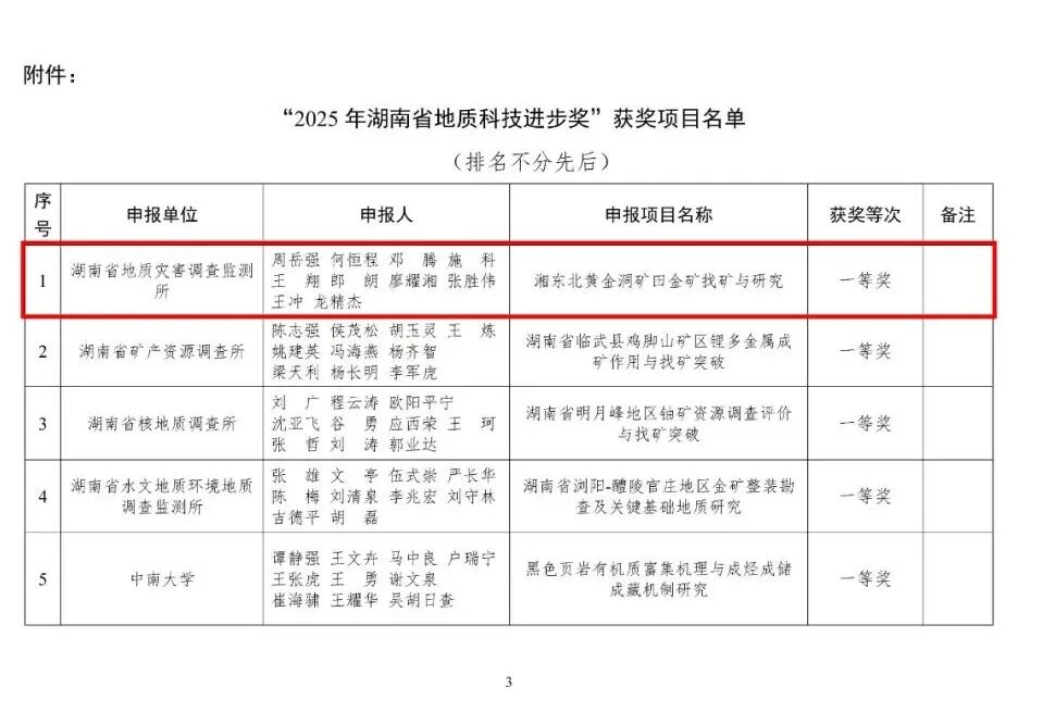 11月12日,湖南省地质学会2025年湖南省地质科技类奖项评选结果揭晓,亚洲最大线上娱乐城所属省地质灾害调查监测所再创佳绩:两个项目分获“湖南省地质科技进步奖”一等奖、二等奖,巫政卿、邹侨获“湖南省青年地质科技奖”,实现项目与个人奖项“双丰收”。这份成绩的背后,不仅体现了地灾所在地质科研领域的创新实力与人才培养成效,还为全所... .....