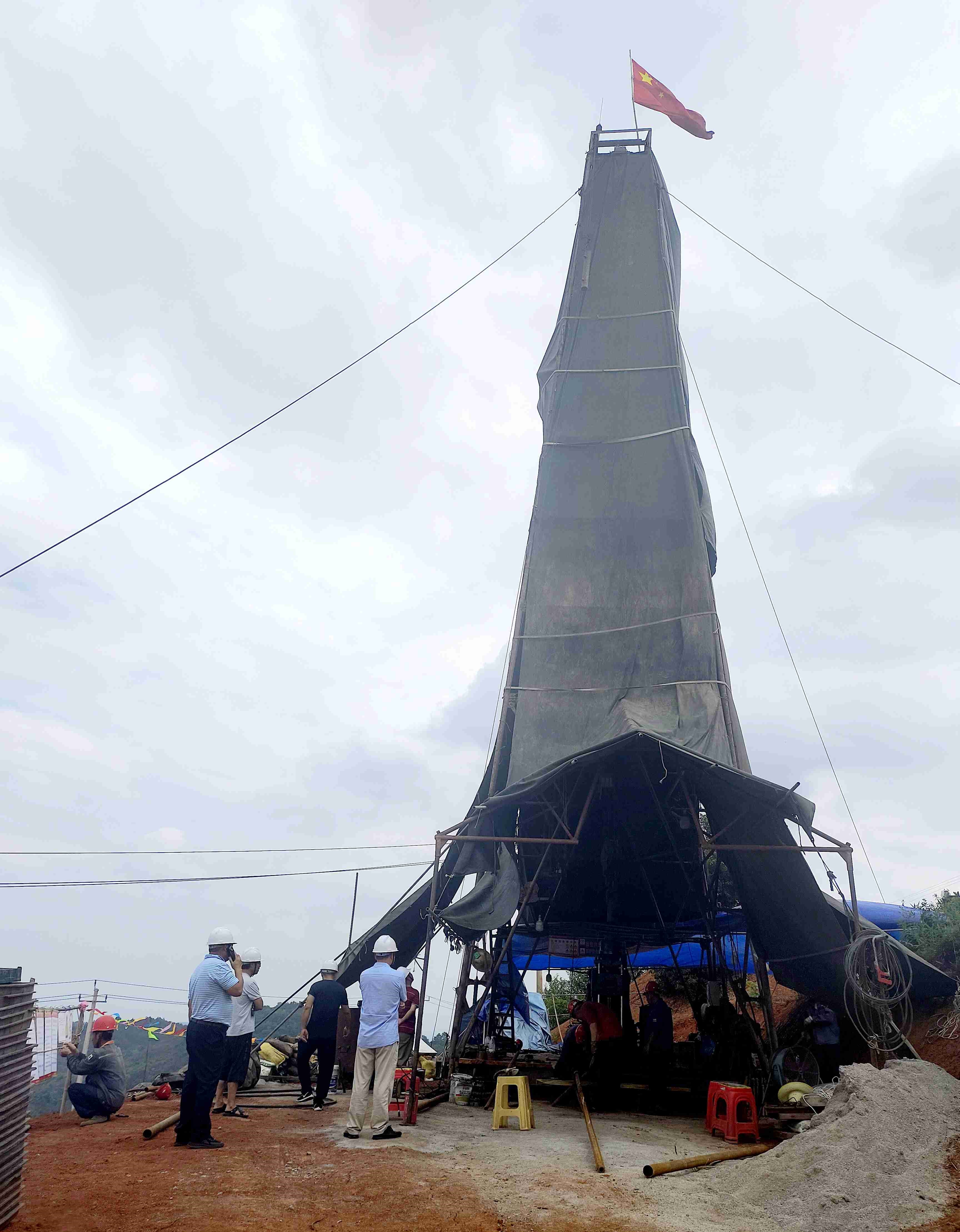 曹新苗一行重点对开钻前准备工作进行检查,他表示职工刚从西藏工地回来,西藏条件恶劣,有些施工条件无法做到,在这里要尽量为机组人员提供相对舒适和安全的工作环境。他检查了钻机防雨防热设施是否得当,前后厂房搭建是否符合标准等事项,强调项目组要牢固树立安全意识,进一步严格落实安全隐患排查、坚持规范作业,奉行安全至上、绿色勘查理念。他对检查发现的安全隐患提出整改要求:一要规范作业场地材料摆放,坚决杜绝乱摆乱放;二要尽可能压实工作场地松土,克服南方多雨的天气弊端;三要强化安全管理规定,做到规范和有序作业。
