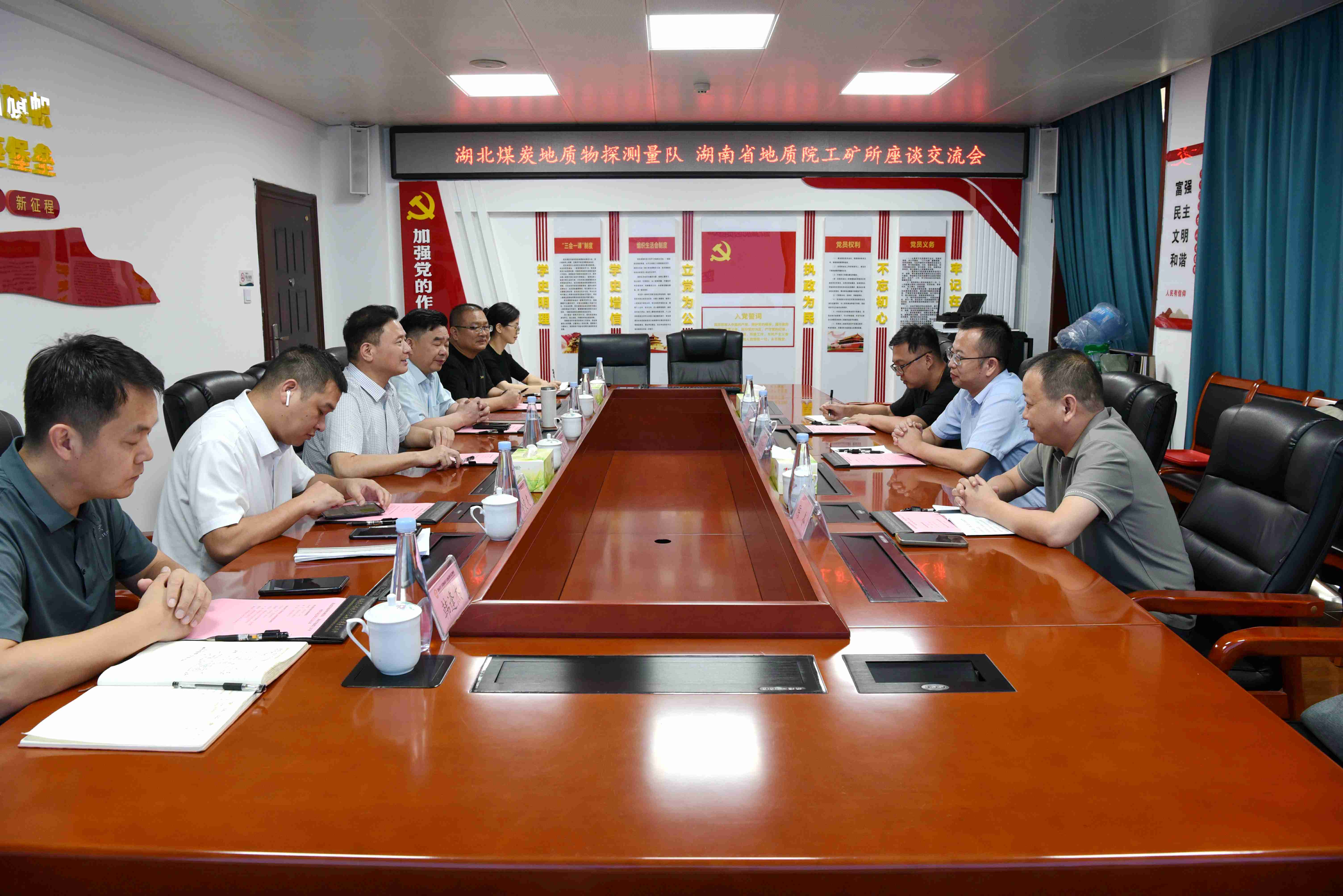 交流讨论环节,双方聚焦能源资源勘查开发深入探讨开展合作的可行性与具体实施路径。双方一致认为,工矿所在能源及矿产资源调查评价、深部钻探等方面的专业能力,与物测队在地球物理勘探、精准定位技术上的优势高度契合。通过联合组建技术团队、共享信息资源,深化交流合作,实现互利共赢。此次会谈为鄂湘两家地质技术单位搭建了合作桥梁,奠定了互信基础。双方表示,将尽快推动合作意向转化为具体行动,在服务国家能源资源保障战略的同时,共同实施“走出去”战略。
