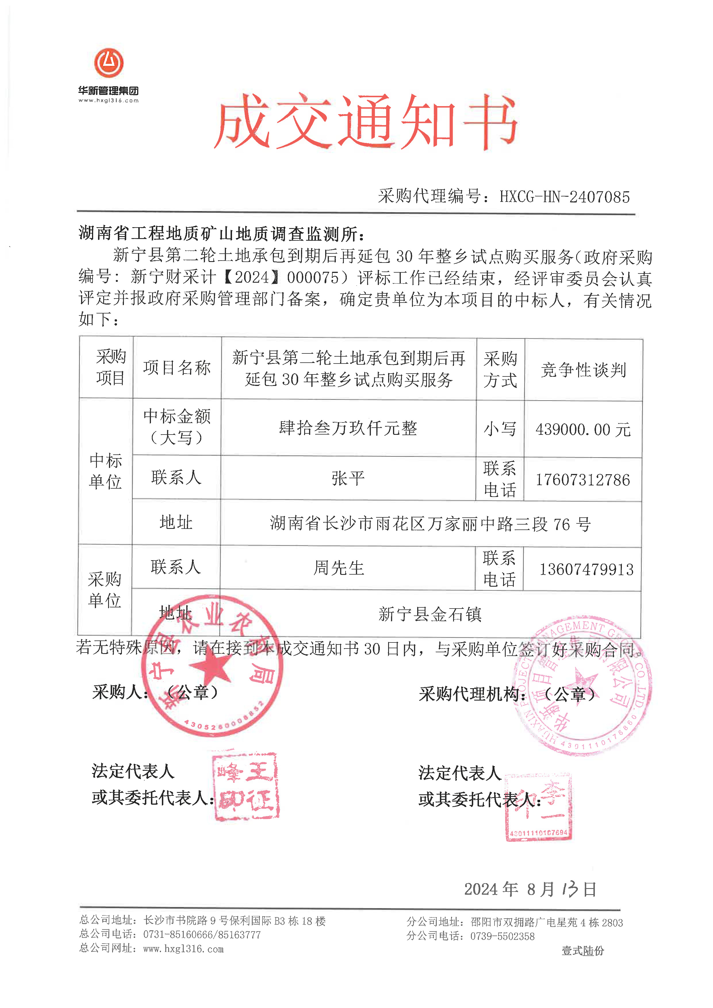 8月13日,湖南工矿所测绘地理信息院中标新宁县第二轮土地承包到期后再延包30年整乡试点购买服务项目。该项目作为农经权项目的延续,后续将在全省全面铺开。按照该试点项目的单价预算,每个县的二轮延包项目金额约在500万元左右,全省将有近6亿元的合同产值。